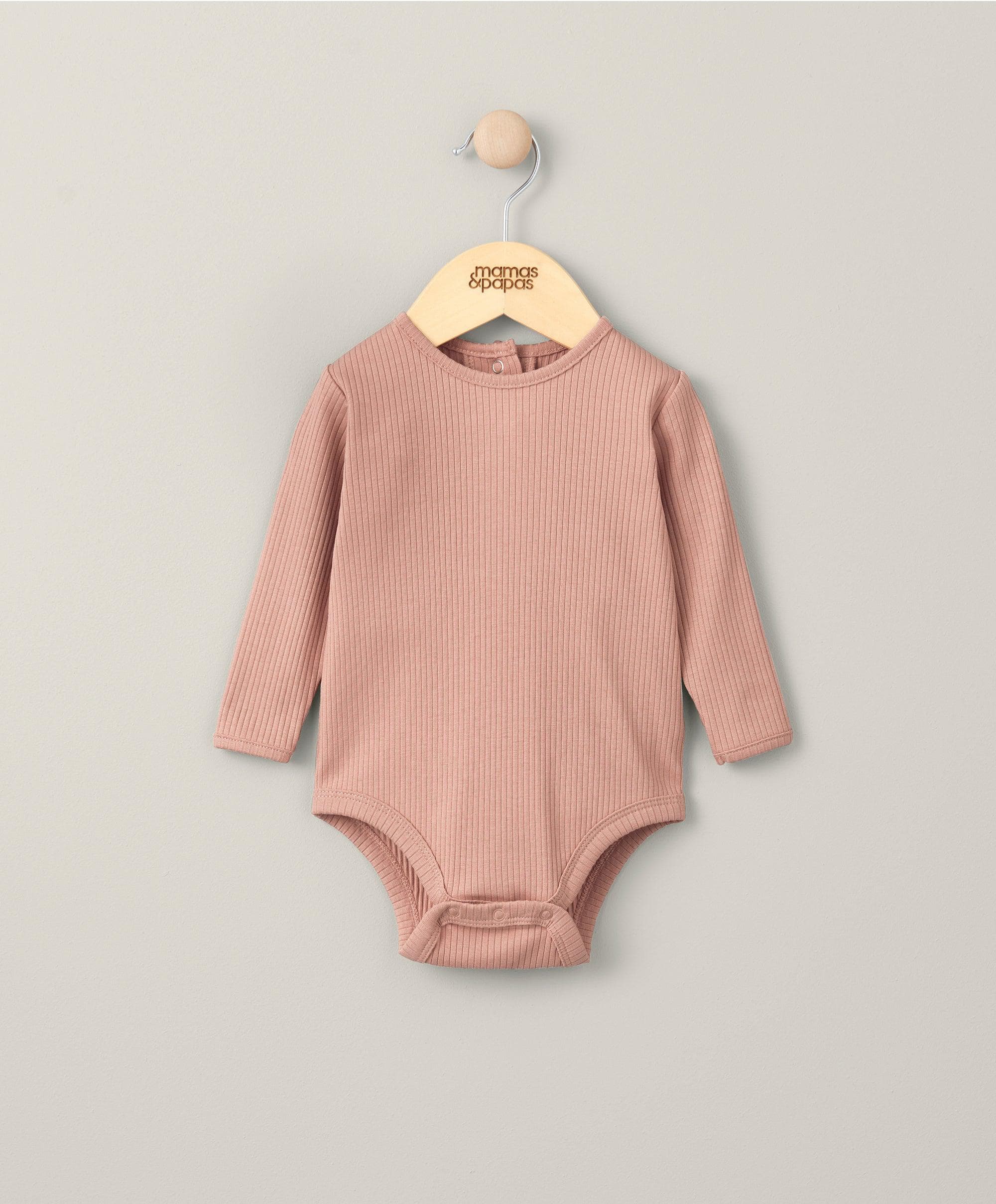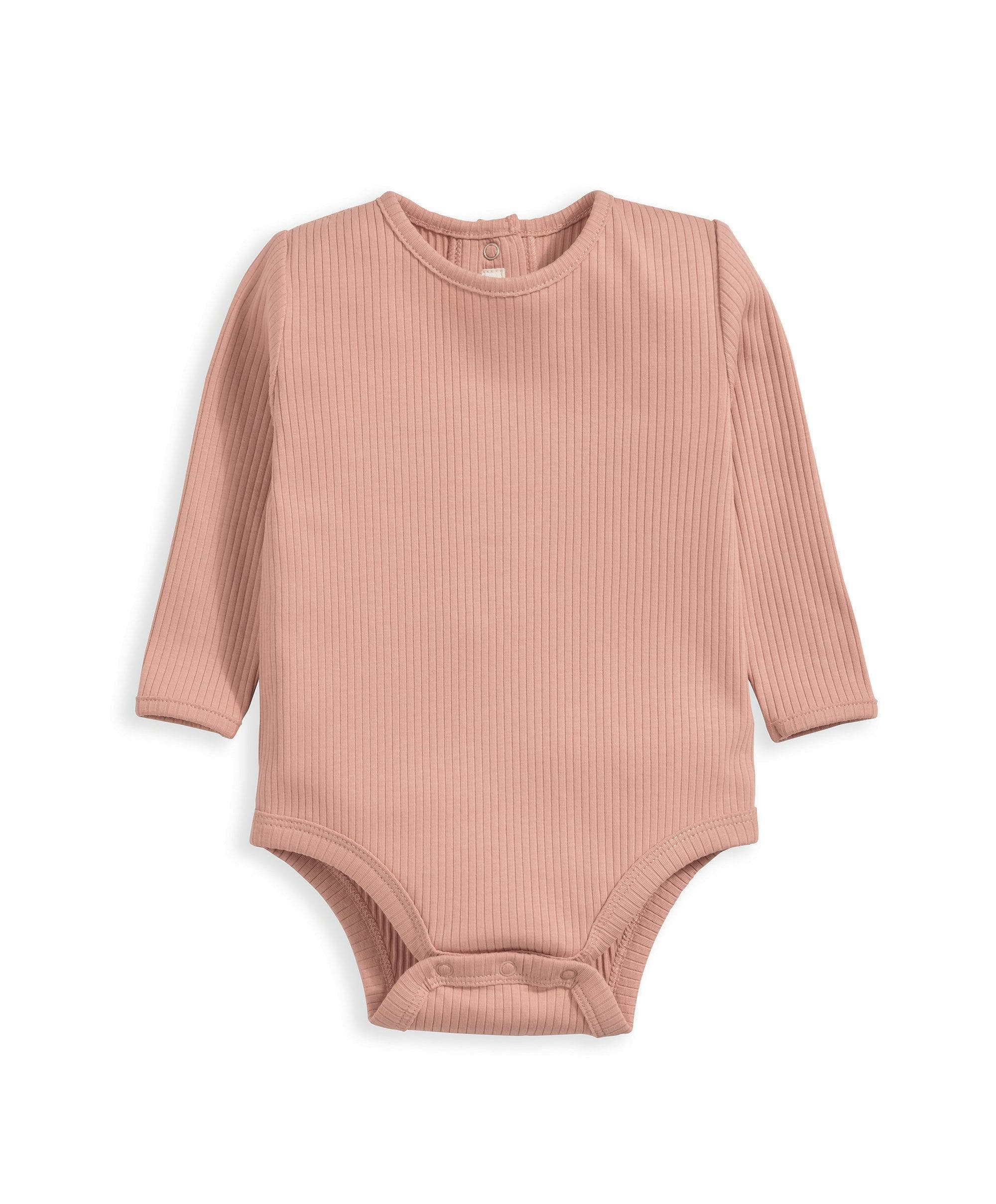 Unisex long-sleeved ribbed bodysuit. With popper crotch fastening for easy nappy changes. Made from supersoft organic cotton. Pairs beautifully with our leggings in matching ribbed organic cotton.