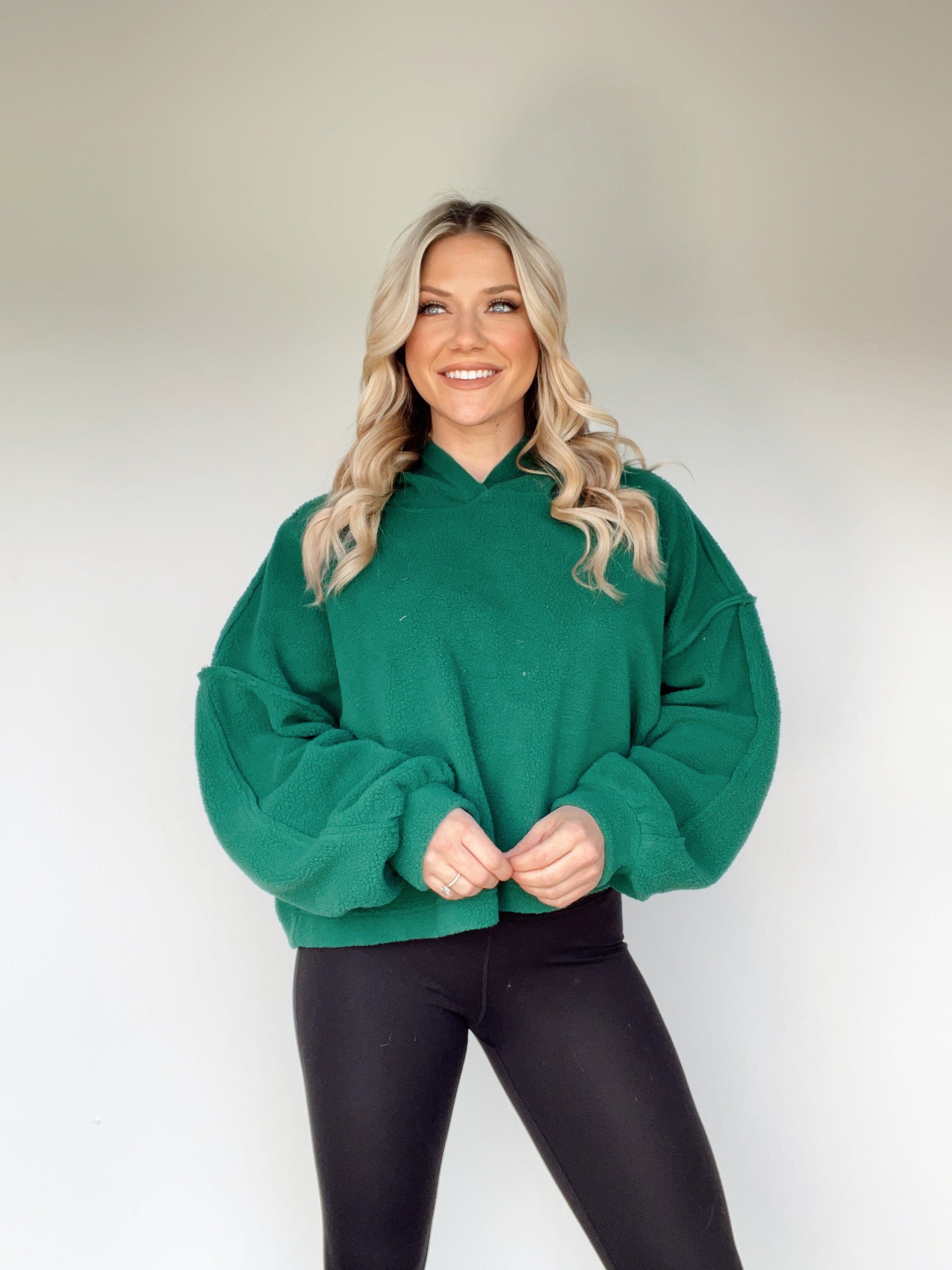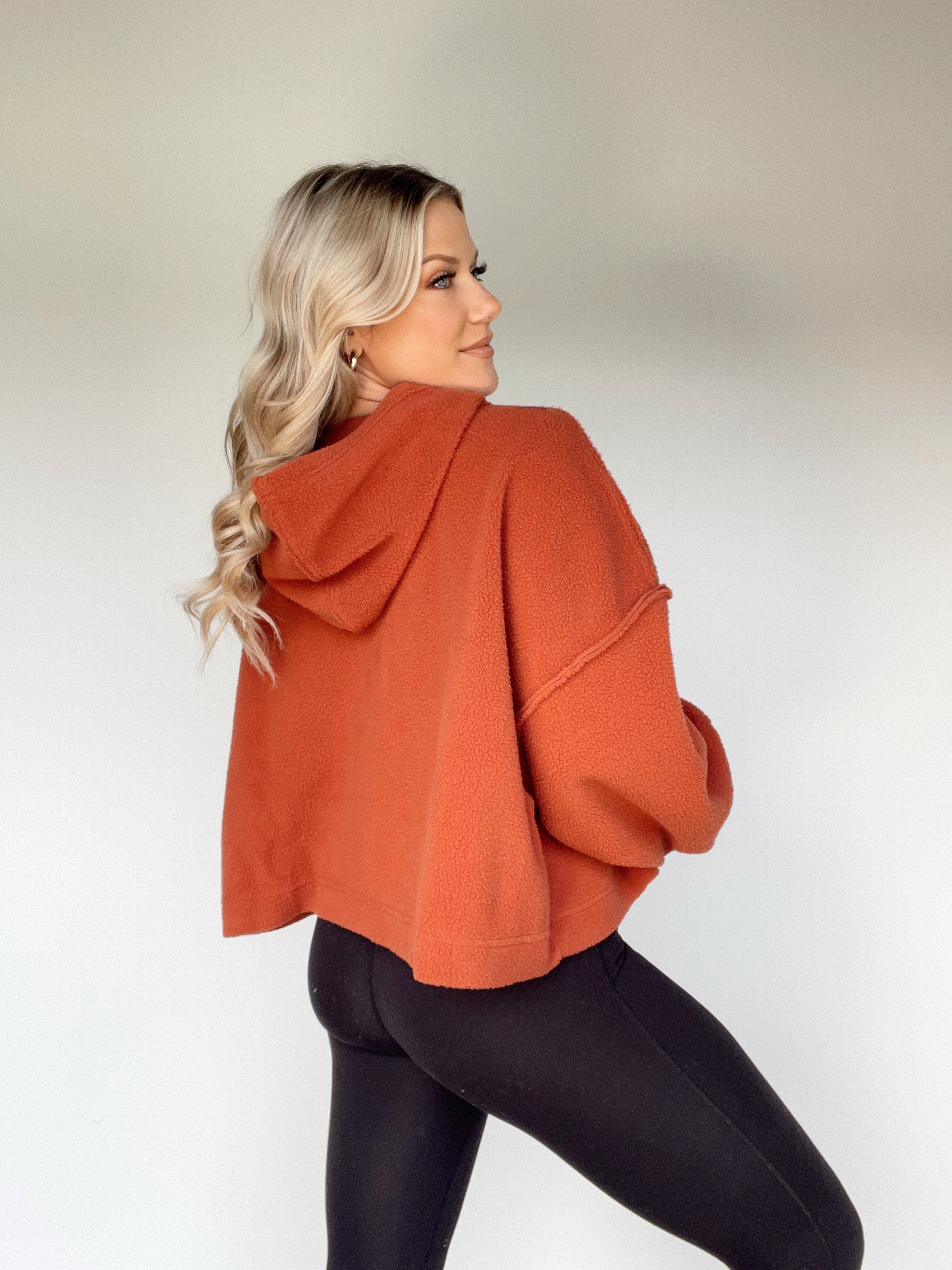 Elevate your wardrobe with this luxe Fleece Frenzy Hoodie. Crafted with 100% sherpa fleece and drop shoulder seams, this hoodie is cozy, warm, and ultra soft. Enjoy the added stretch and comfort of this premium hoodie, perfect for lounging or running your winter errands in elevated athleisure style. Perfect for sipping hot cocoa with friends or shopping in trendy, cozy style!