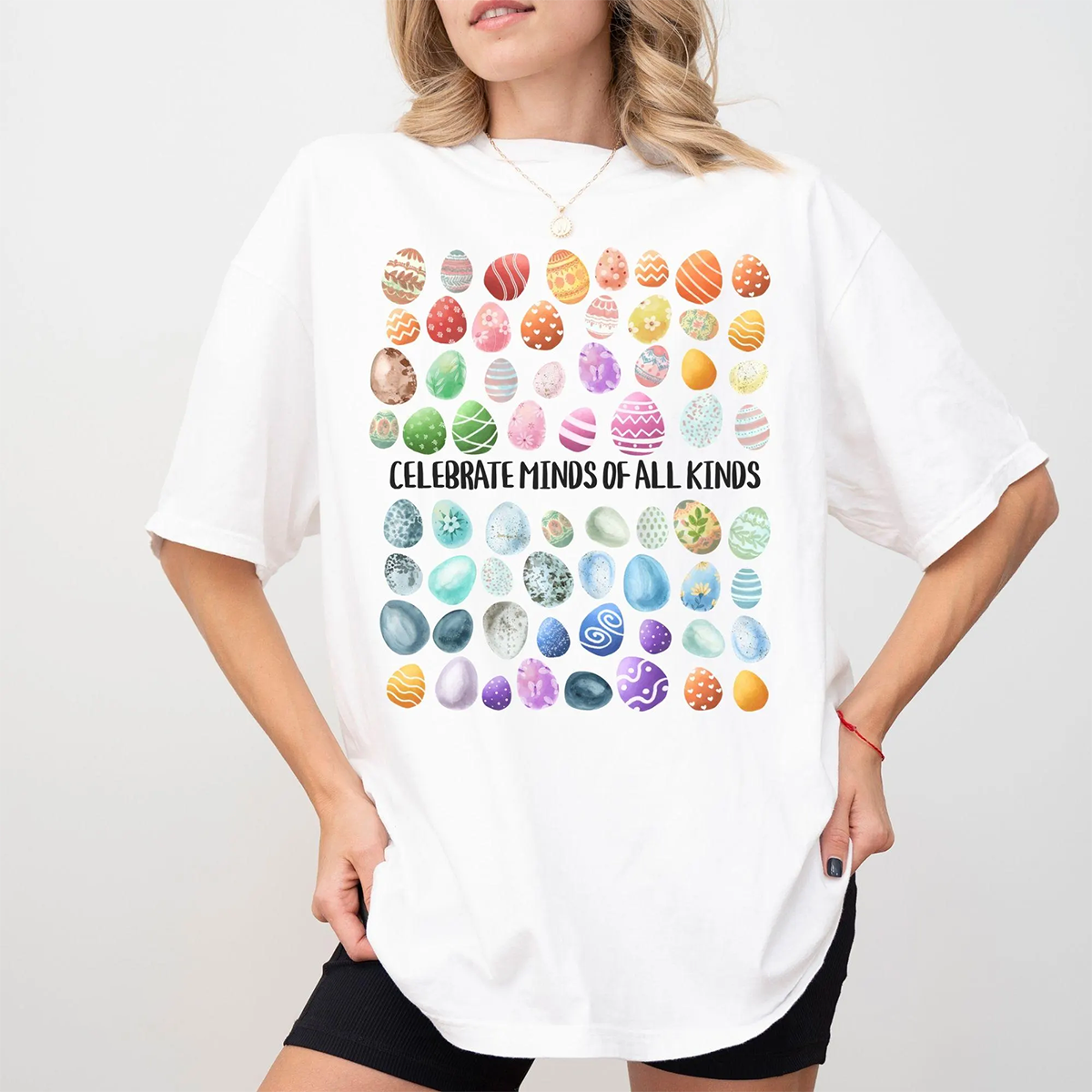Easter Celebrate Minds Of All Kinds Printed Round Neck Short Sleeve T-Shirt