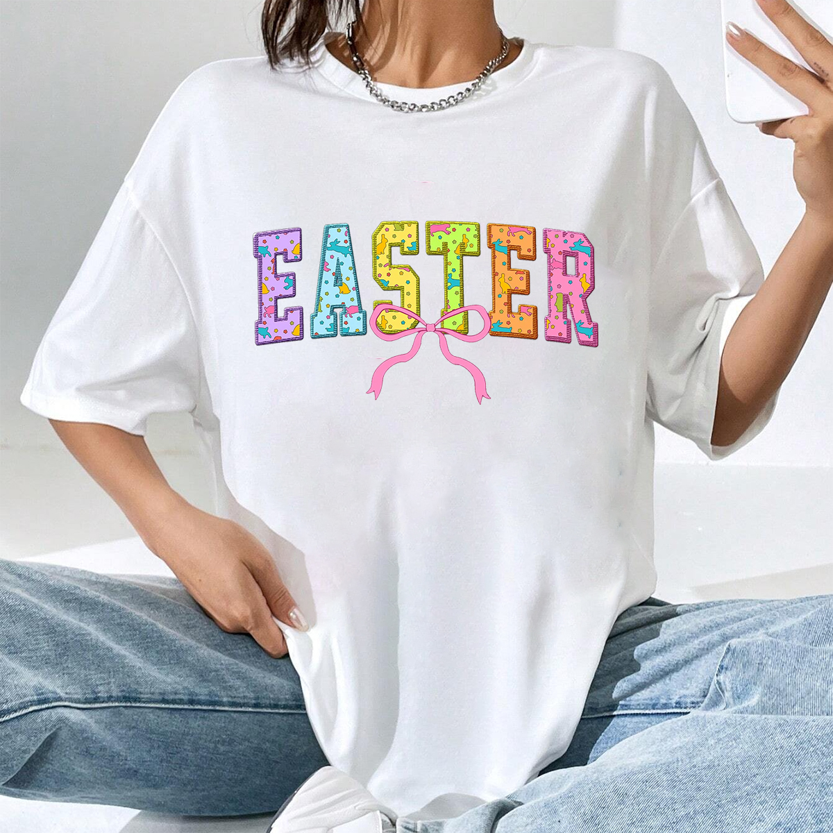 Easter Printed Round Neck Short Sleeve T-Shirt