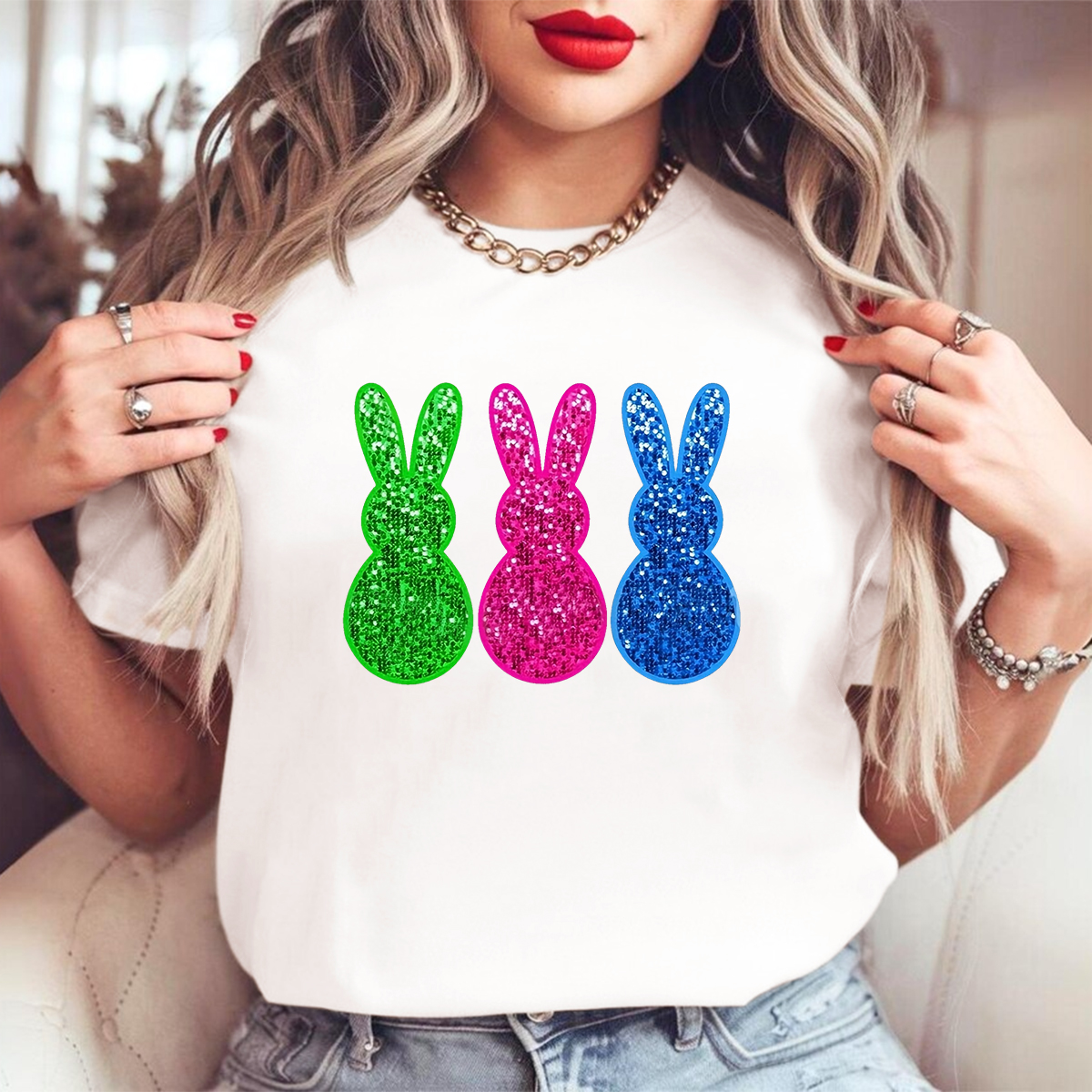 Easter Shiny Bunny Printed Round Neck Short Sleeve T-Shirt