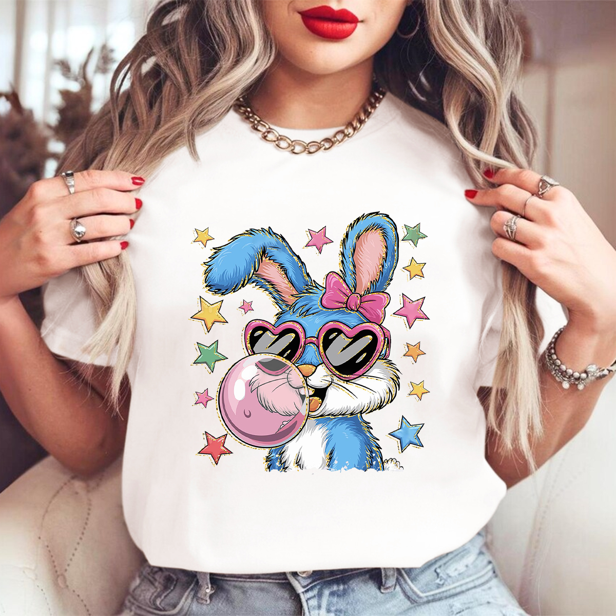 Easter Star Bunny Printed Round Neck Short Sleeve T-Shirt