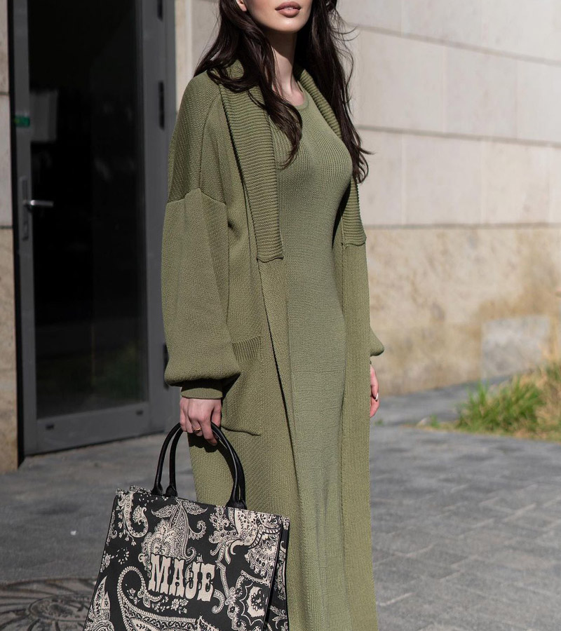 Product:Elegant Long Sweater Dress & Cardigan Coat Two Pieces Set