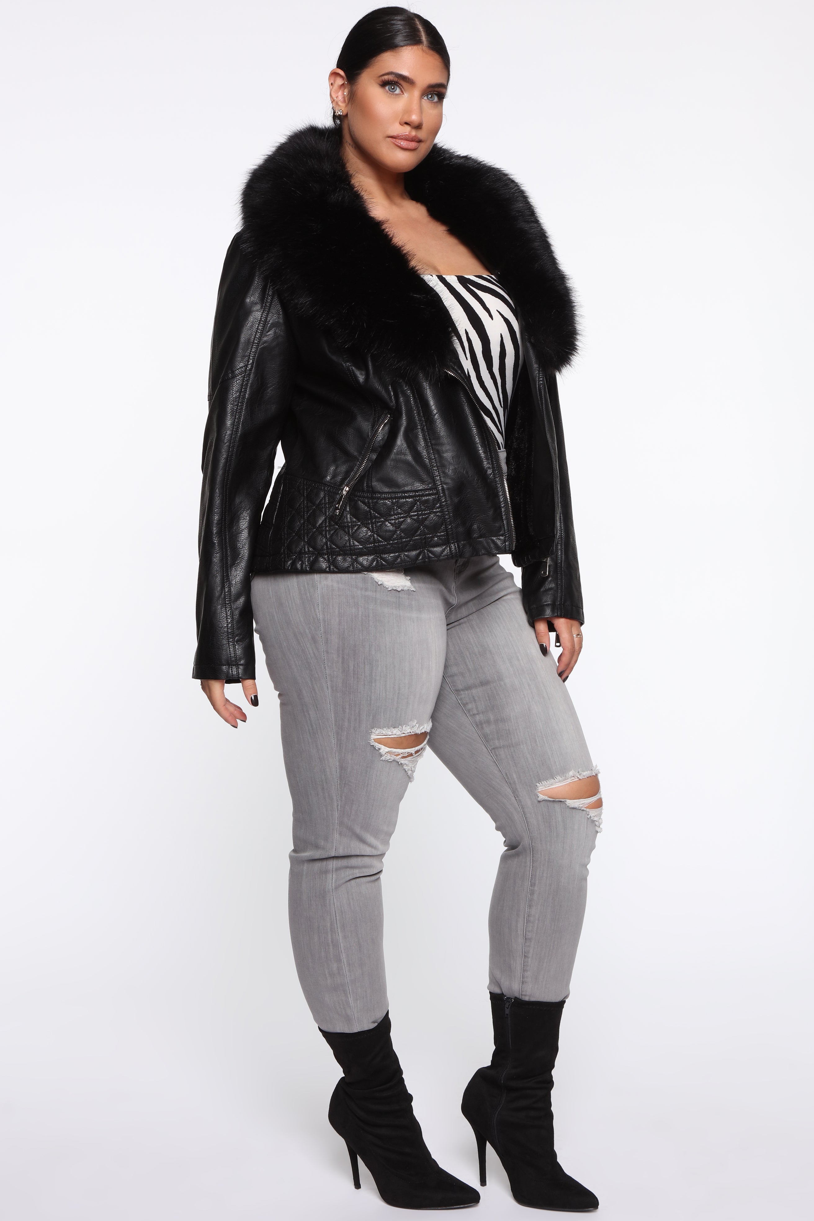 - Faux Fur Collar Removable