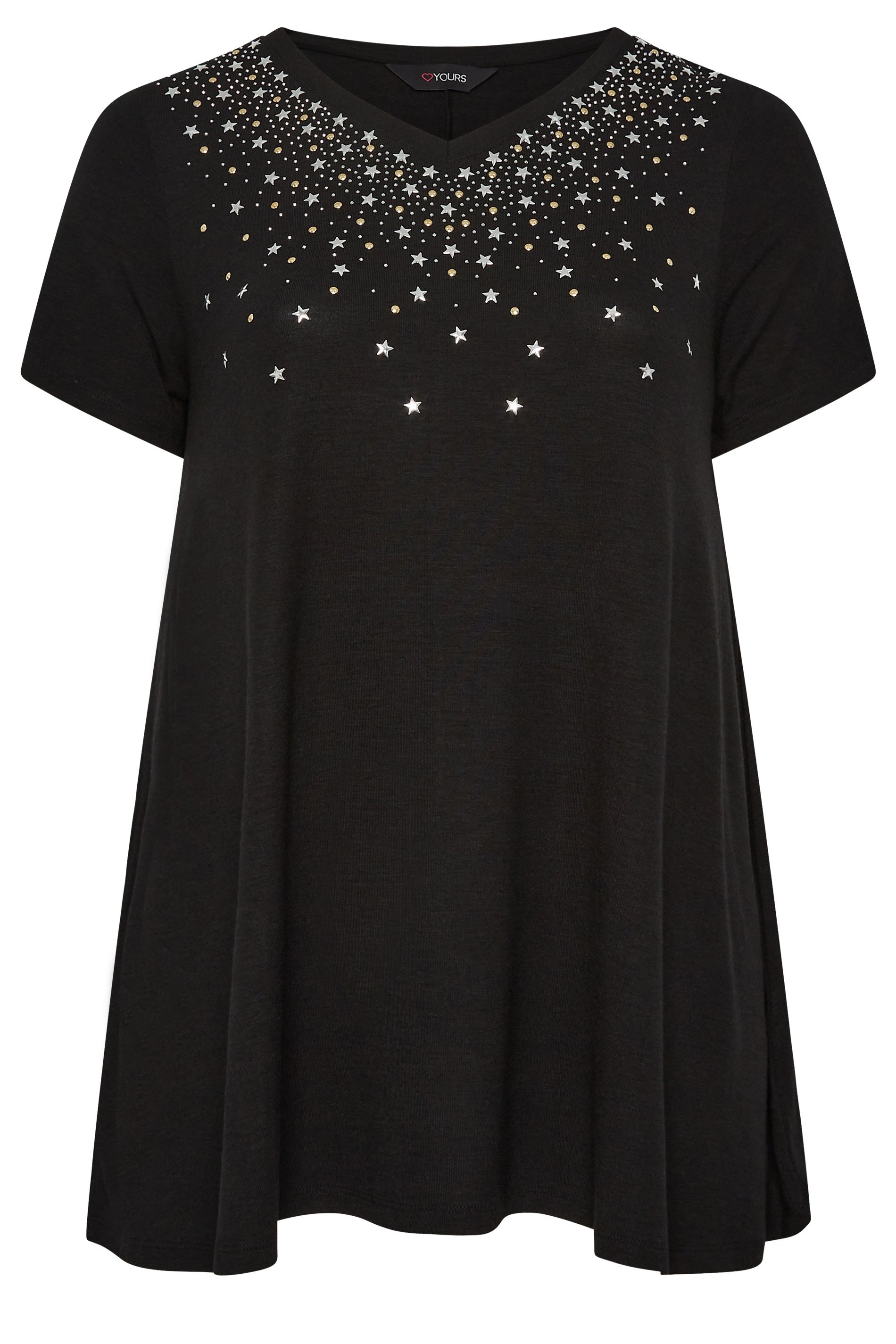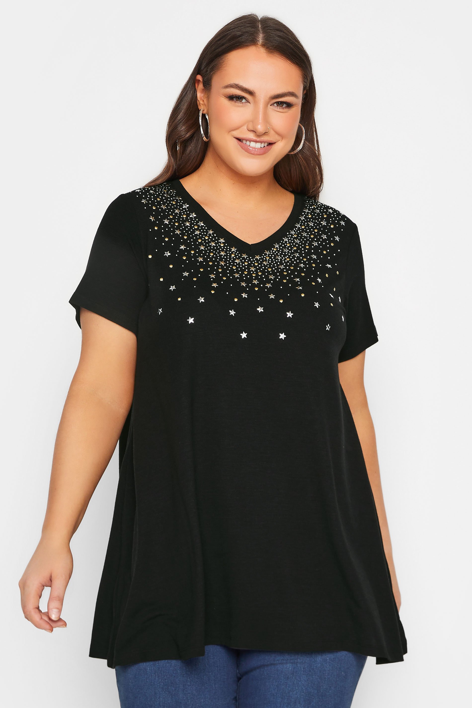 Want to revive your top collection? This swing top will vamp up your wardrobe, made from a soft jersey fabric, it features embellishments, a v-neckline in a swing top design. Pair with jeans and boots to brighten up that casual look!