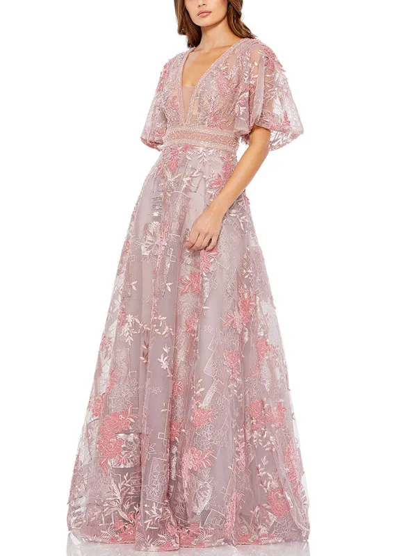 Embroidered Ruffle Sleeve A-line Dress 313156