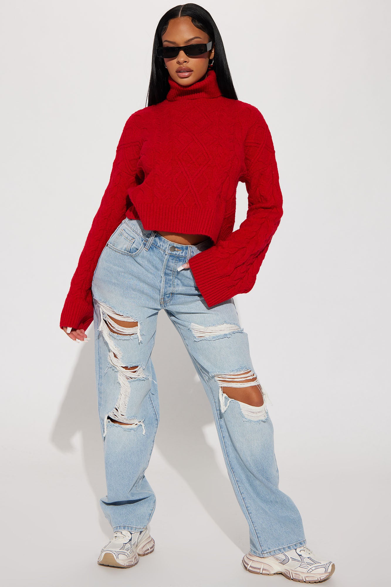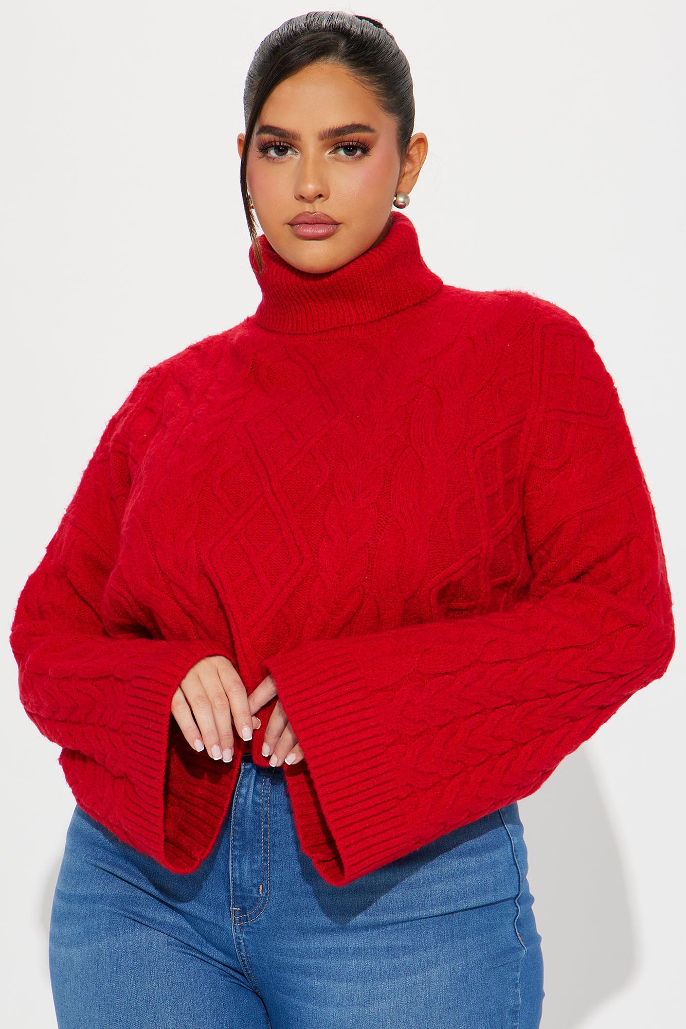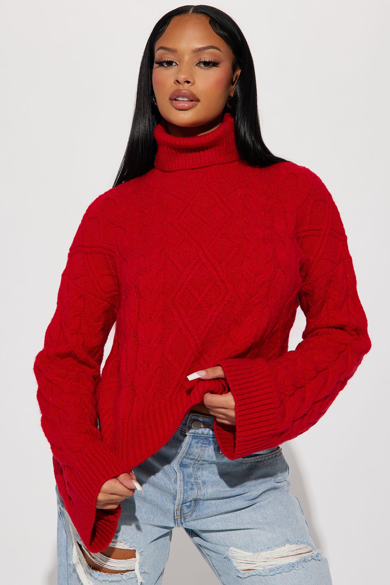 Endless Cuddles Cable Knit Sweater - Red 279681