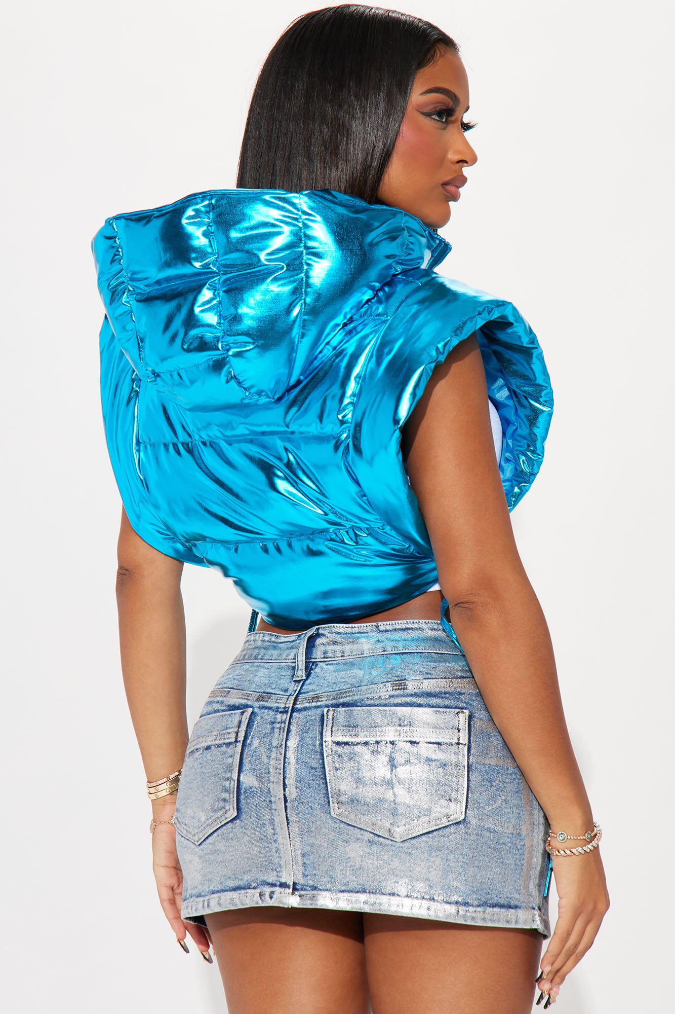 Euphoria Metallic Puffer Vest - Turquoise 284023
