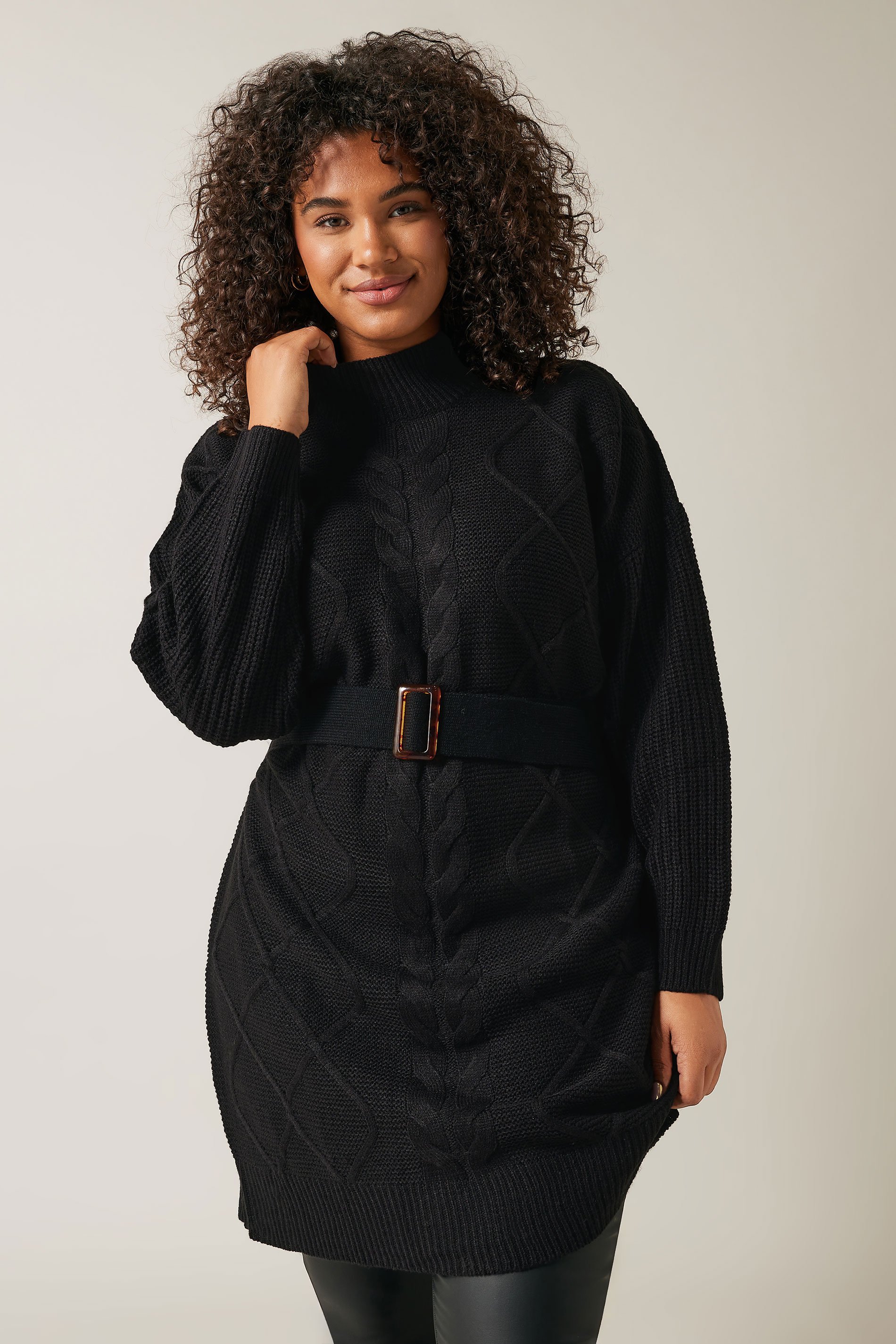 Elevate your winter wardrobe with the Evans Black High Neck Cable Knit Longline Jumper. Crafted for both comfort and style, its intricate cable knit design adds texture while the high neck offers extra warmth. Embrace a trendy, layered look by pairing this longline jumper with leggings and knee-high boots, perfect for staying cozy and fashionable during the colder months.