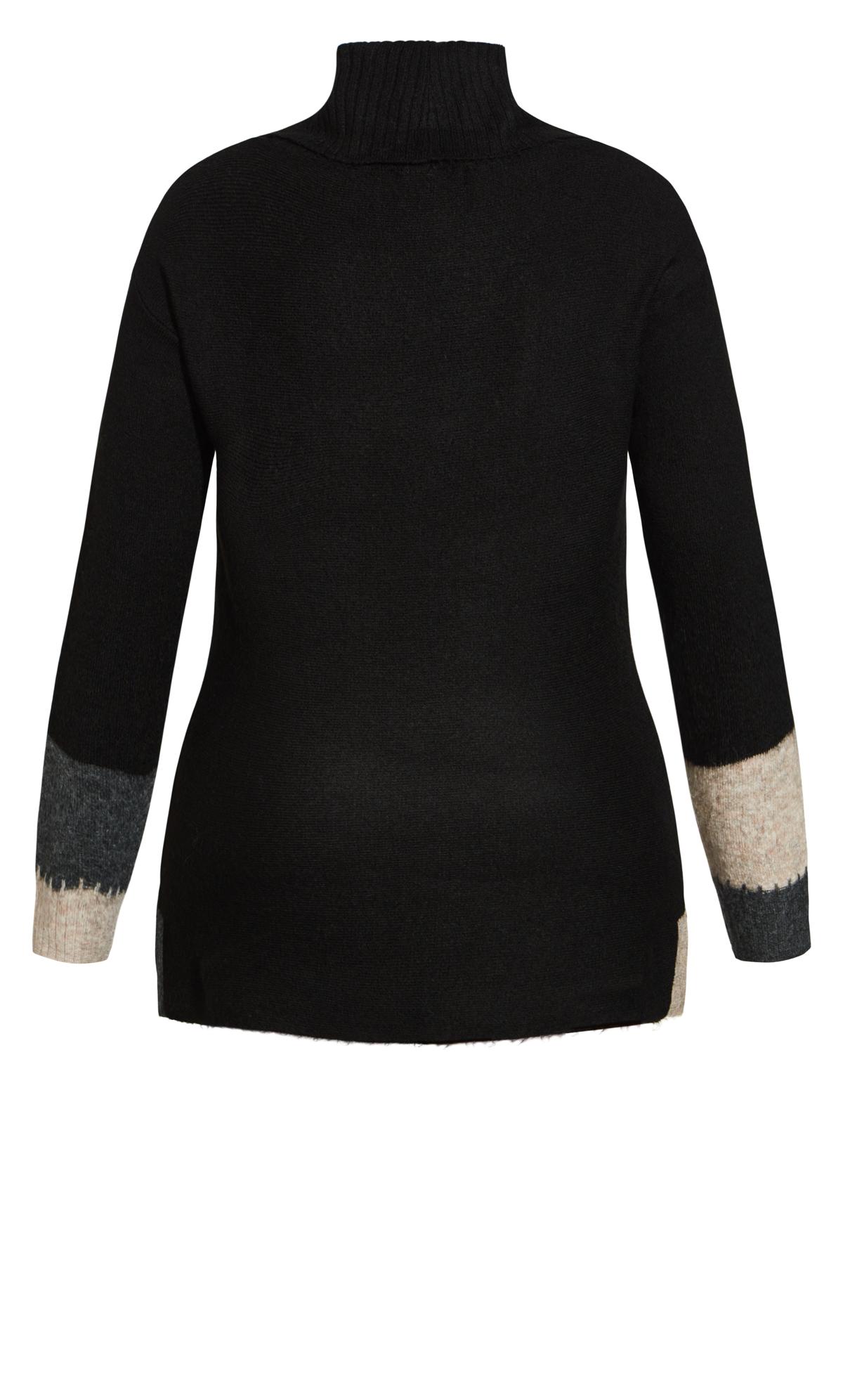The perfect jumper to provide both warmth and style. Made from a soft knitted fabric, it features a colourblock design, roll neckline and long sleeves. Pair with your favourite jeans and boots for a chic yet cosy look.