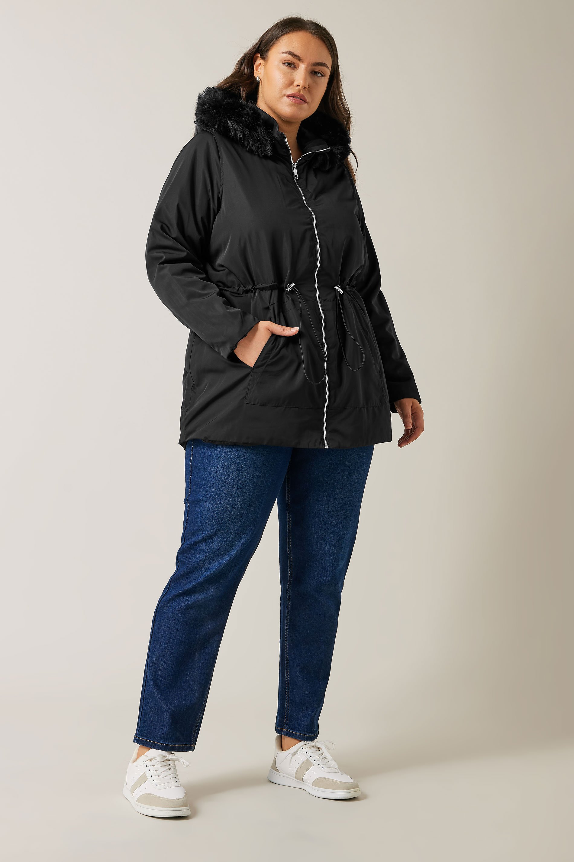 Introducing the Evans Black Faux Fur Lightweight Coat – a chic and cozy addition to your outerwear collection. This black coat features luxurious faux fur detailing, offering a stylish touch without the weight. Elevate your winter style effortlessly with this versatile and comfortable piece, perfect for both casual outings and more polished occasions.