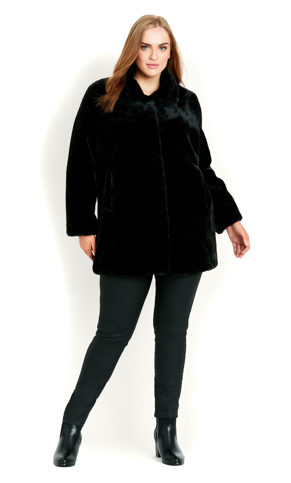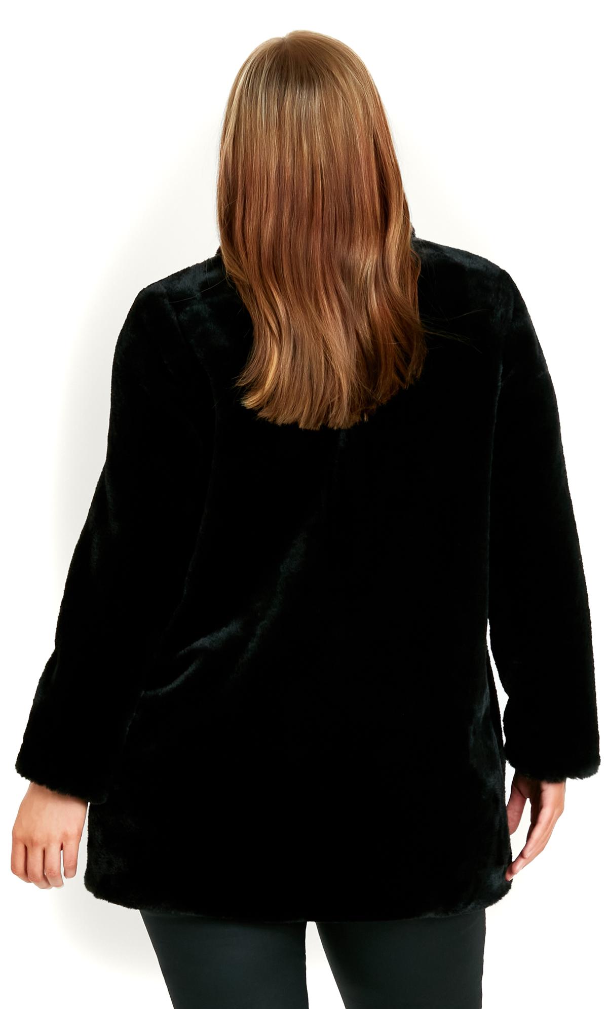 Elevate your winter style with the Evans Black Faux Fur Coat, a perfect blend of glamour and warmth. The deep black color and faux fur texture create a luxurious and versatile look. Whether draped over formal attire for a chic evening out or worn with casual clothes for a cosy vibe, this coat effortlessly combines comfort and fashion, making it an essential addition to your cold-weather wardrobe for various occasions.