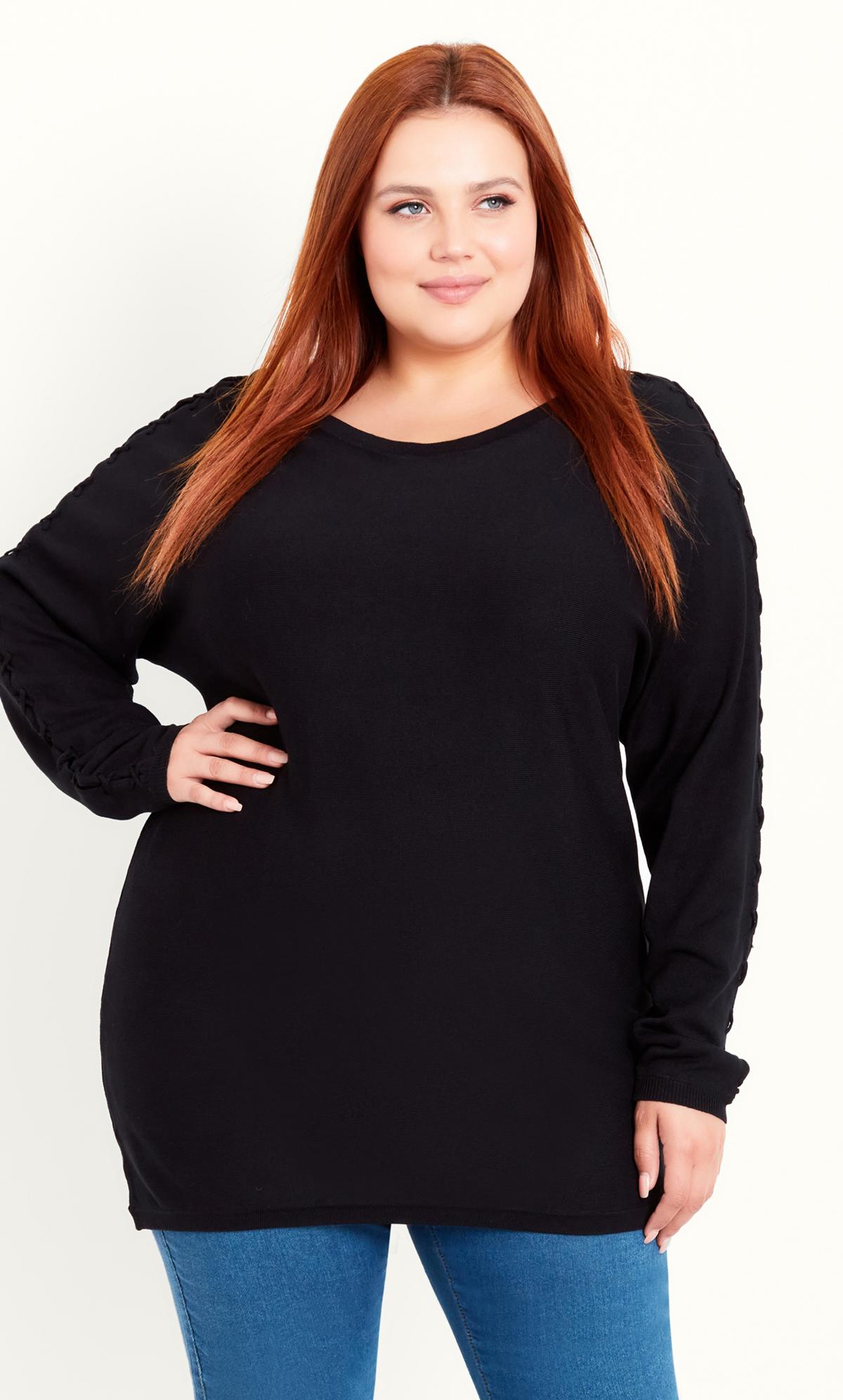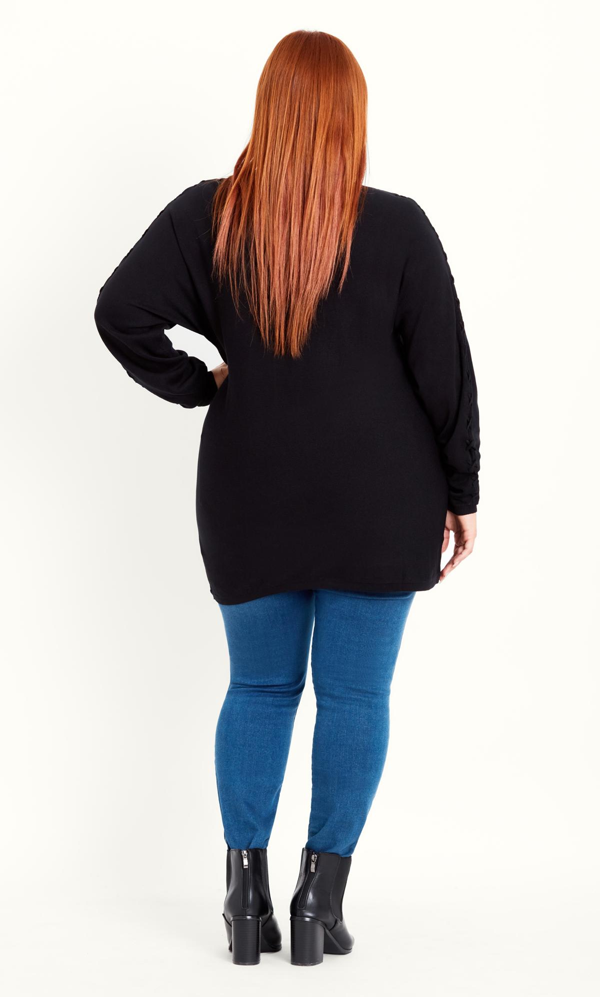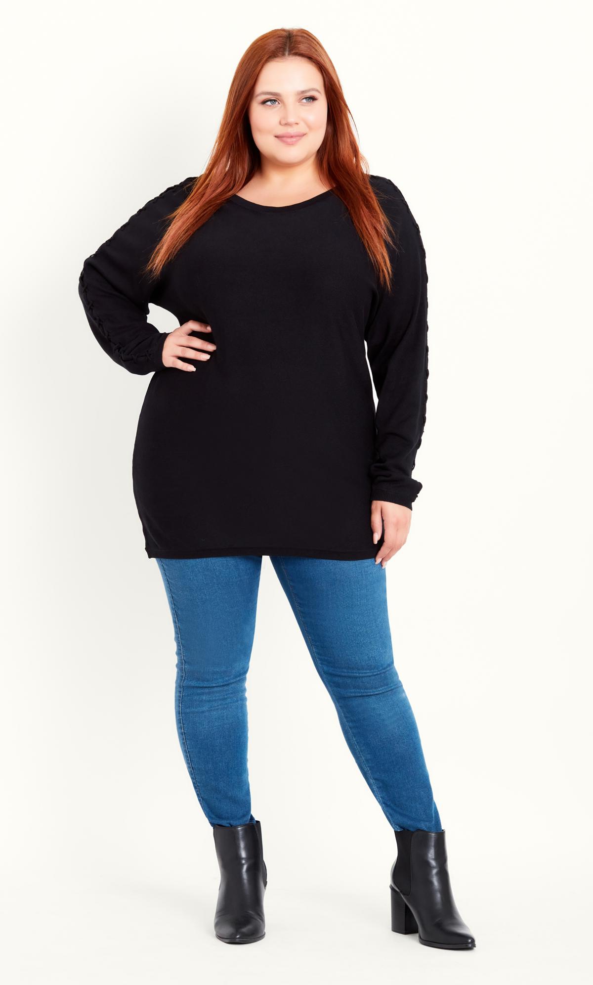 Elevate your winter wardrobe with the Evans Black Knot Sleeve Jumper, a chic and stylish addition to your knitwear collection. The classic black hue provides a sleek and versatile backdrop, while the knot sleeve detailing adds a modern and fashionable touch. Crafted for both style and comfort, this Evans jumper is perfect for creating effortlessly trendy and polished looks for the colder seasons.