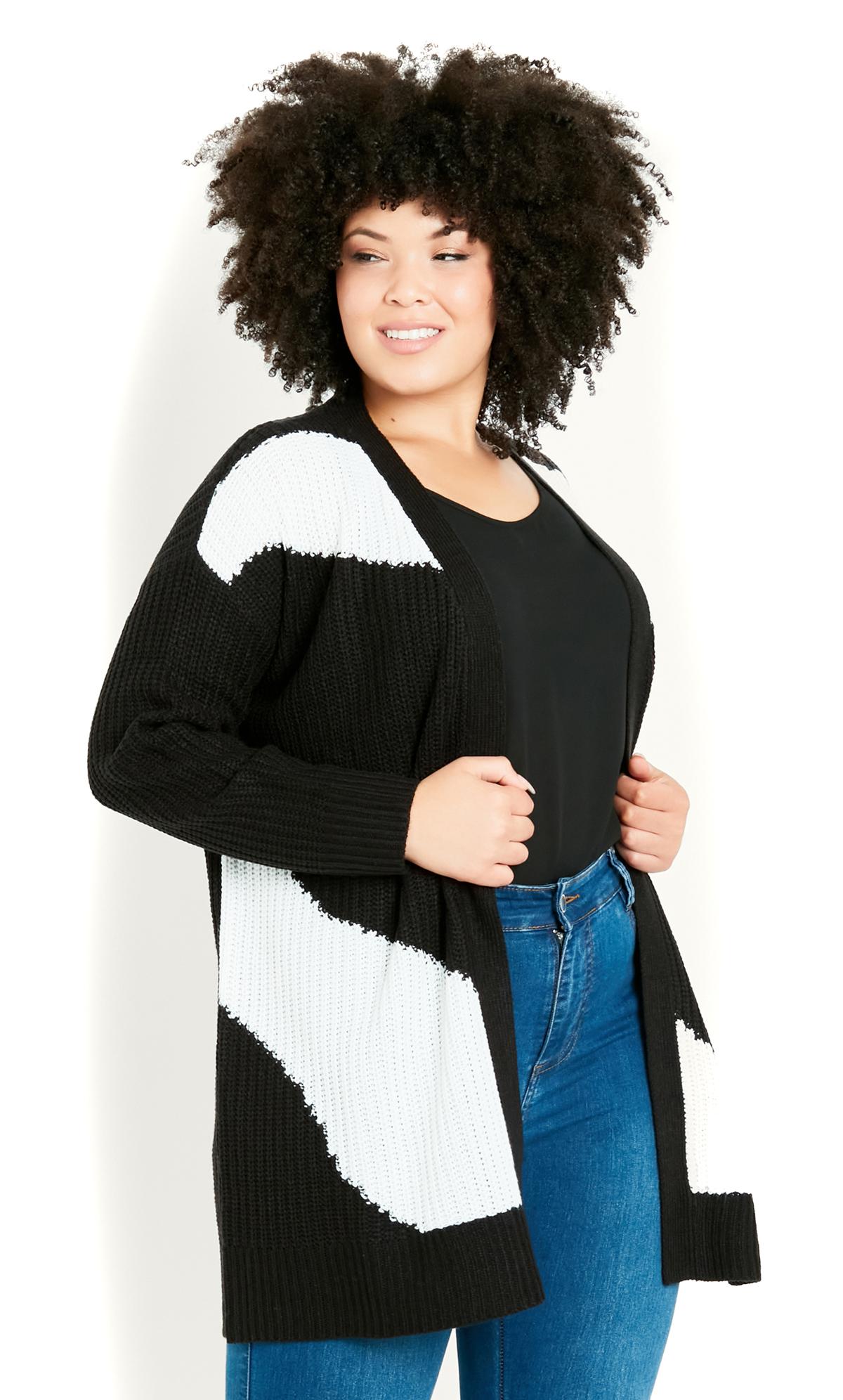 Stay stylishly cozy with the Evans Black & White Colour Block Cardigan. This cardigan blends modern design with classic comfort, featuring a chic black and white colour block pattern. Layer it over a simple tee or blouse, and pair with jeans or trousers for an effortlessly stylish look that adds a touch of sophistication to your casual ensemble while keeping you warm and comfortable.