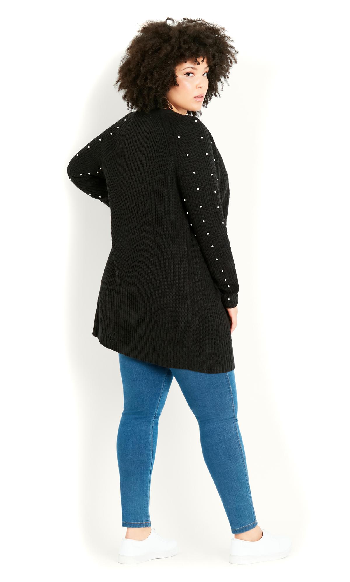 Elevate your knitwear collection with the Evans Black Ribbed Knit Pearl Embellished Cardigan. The ribbed texture adds depth to this classic piece, while the pearl embellishments provide a touch of elegance. Embrace its versatility by layering it over a blouse and trousers for a stylish office look or pairing it with a dress and heels for a sophisticated evening ensemble.