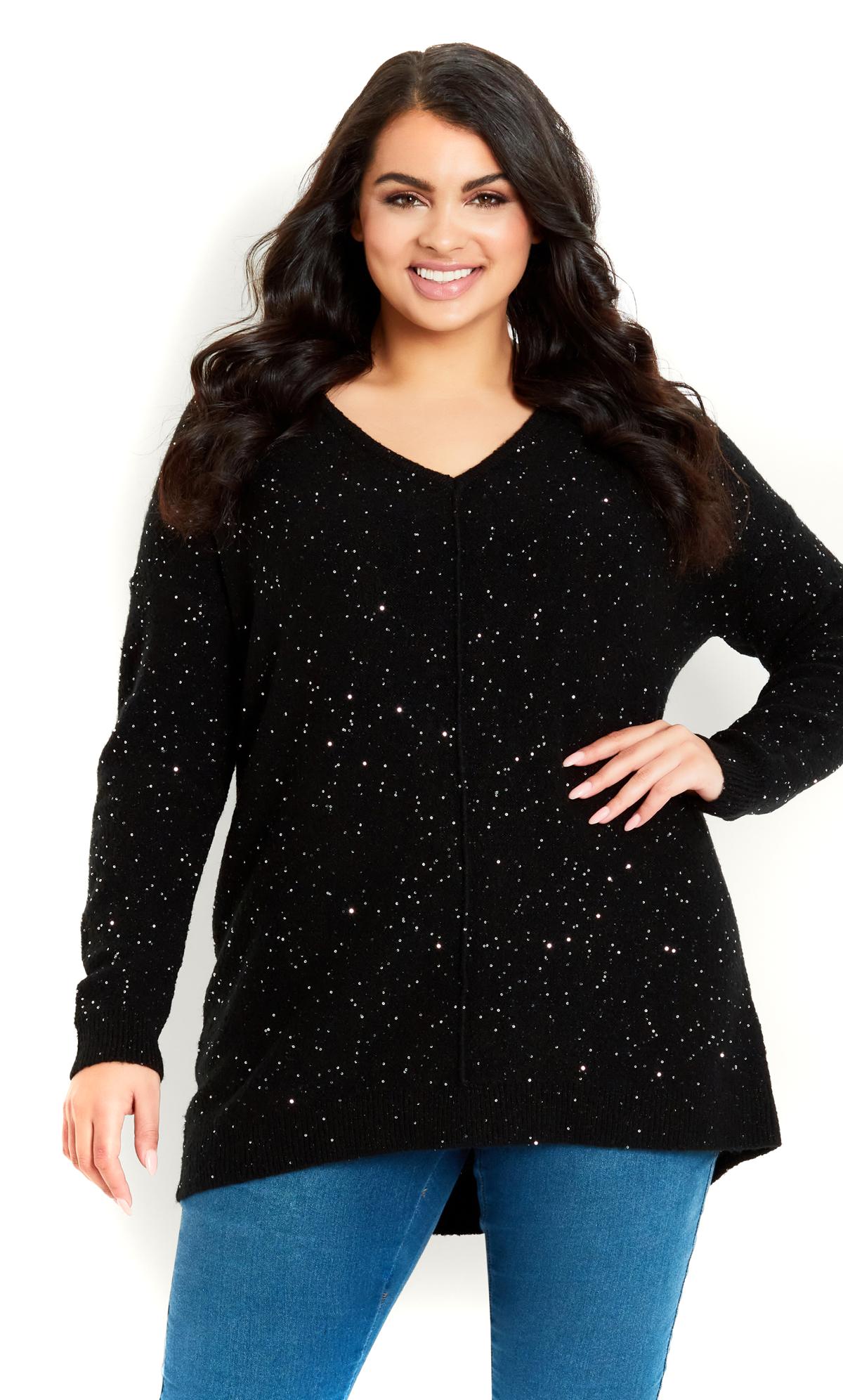 Introducing the Avenue Black & Silver Sequin Knit Jumper – a chic and festive choice for your wardrobe. This jumper from Avenue features a black and silver sequin knit design, adding a touch of glamour to your look. Elevate your outfit effortlessly with this stylish and shimmering piece, perfect for bringing a festive sparkle to your seasonal style.
