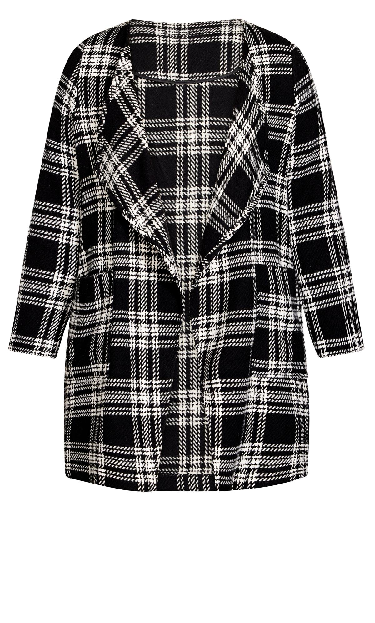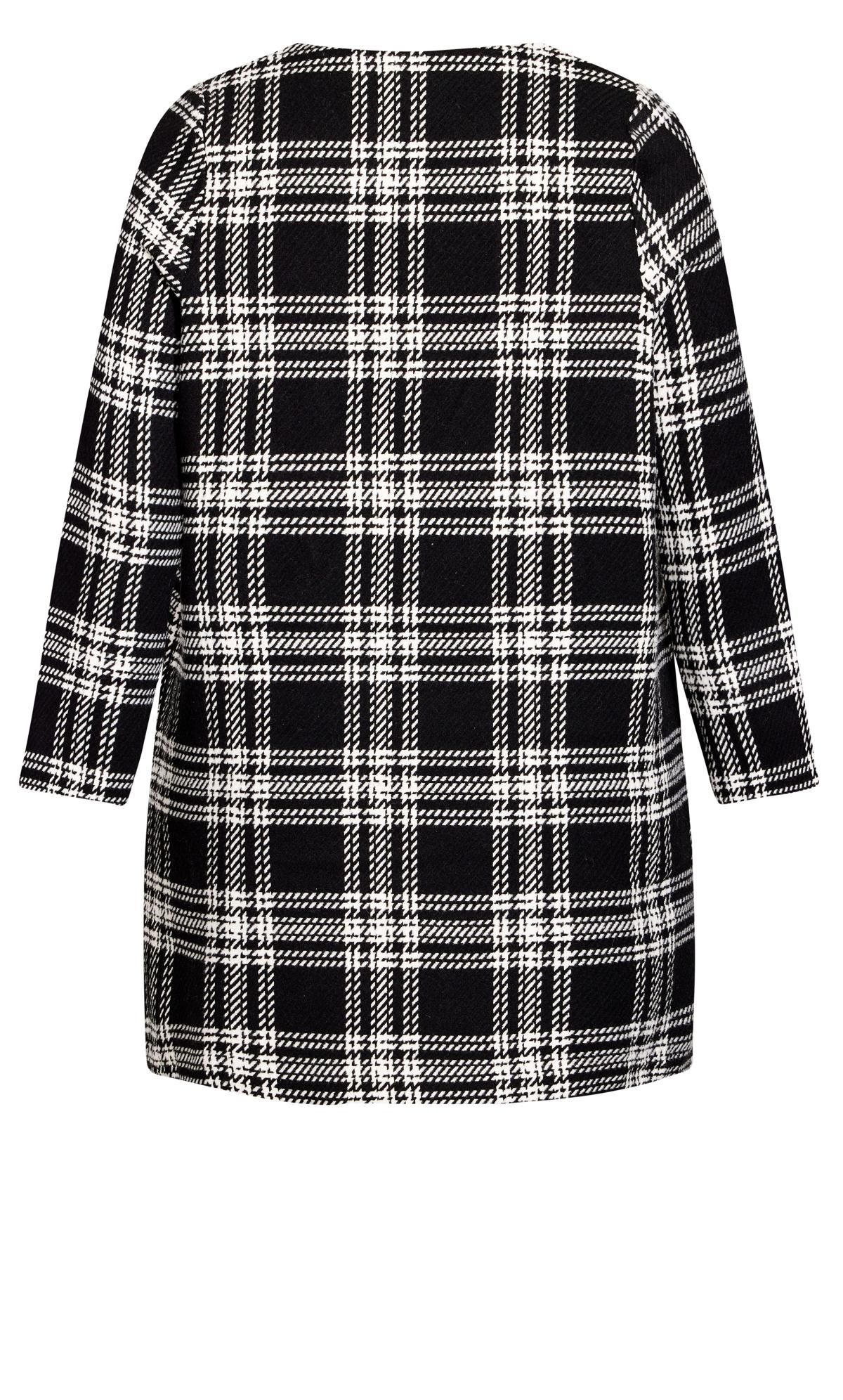 Introducing the Spring Black Check Waterfall Jacket – a stylish and lightweight layer for your spring wardrobe. This black check jacket features a flattering waterfall design, effortlessly combining fashion and comfort. Elevate your springtime look with this versatile piece, perfect for adding a touch of sophistication to your outfit as the weather warms up.