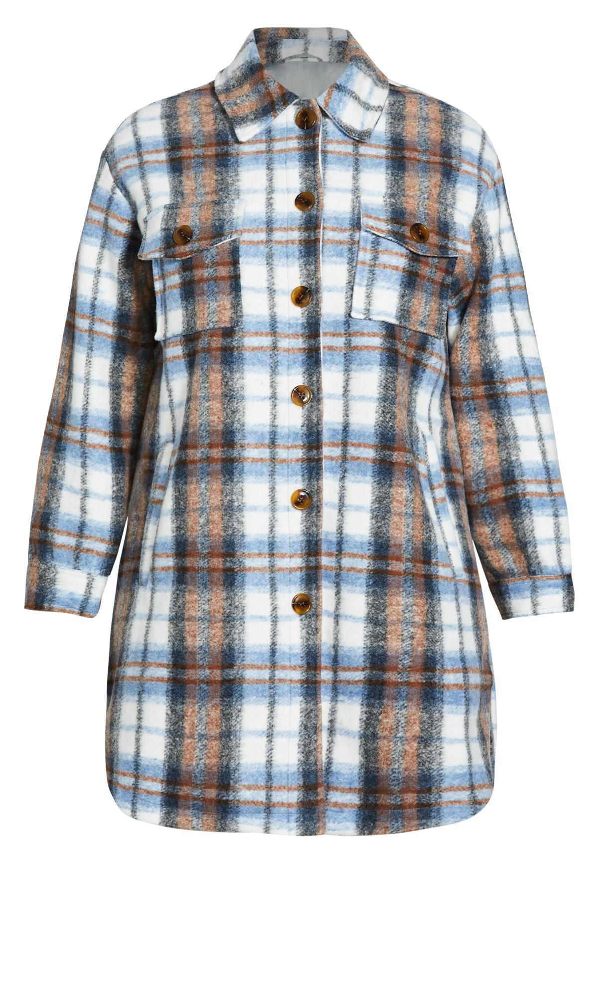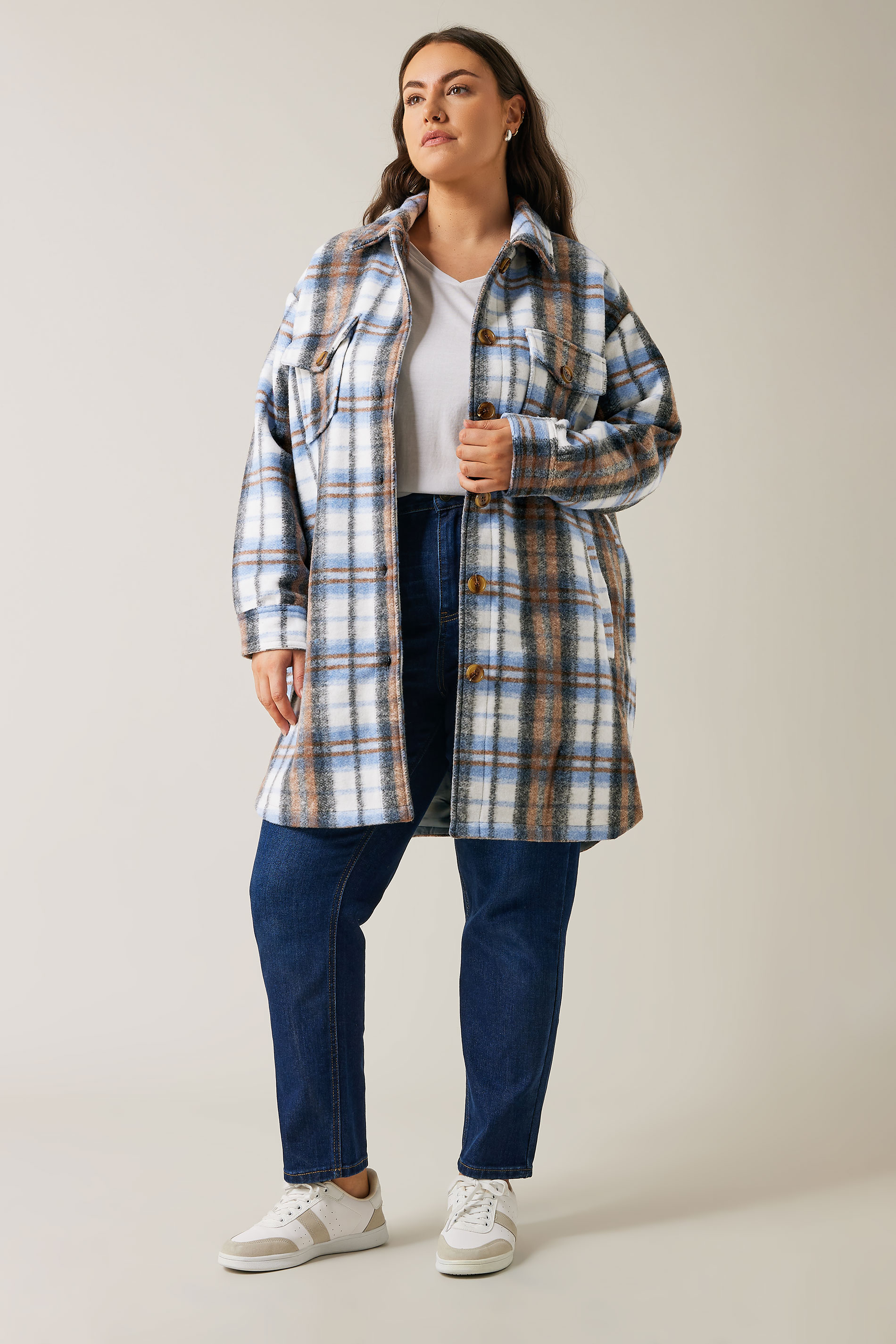 Discover the perfect blend of style and comfort with the Evans Blue & Brown Check Midi Shacket. This versatile piece combines the structure of a shirt with the warmth of a jacket. The blue and brown check pattern adds a touch of sophistication, making it an ideal addition to your transitional wardrobe.