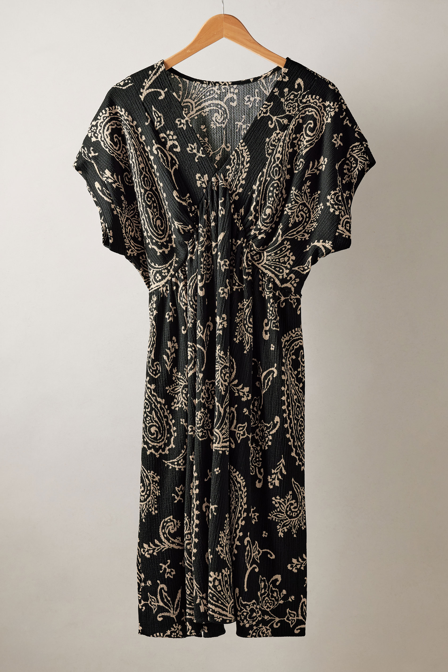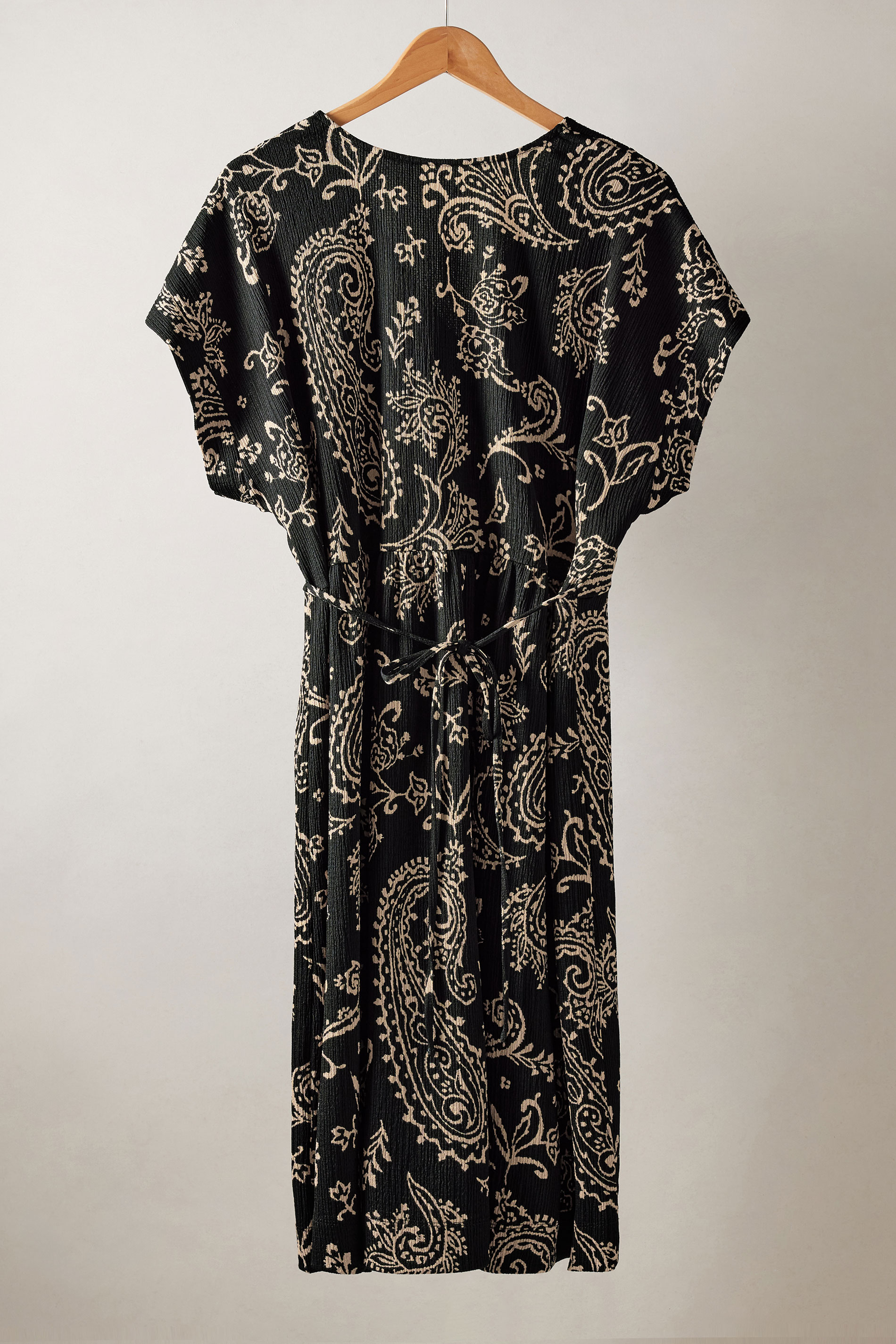 Elevate your summer wardrobe with our new-in dress! Crafted from a blend of polyester and elastane, this dress is lightweight and provides the perfect amount of stretch. This dress features a tie waist, short sleeves and midi length. Partner with sandals for the ultimate summer outfit.