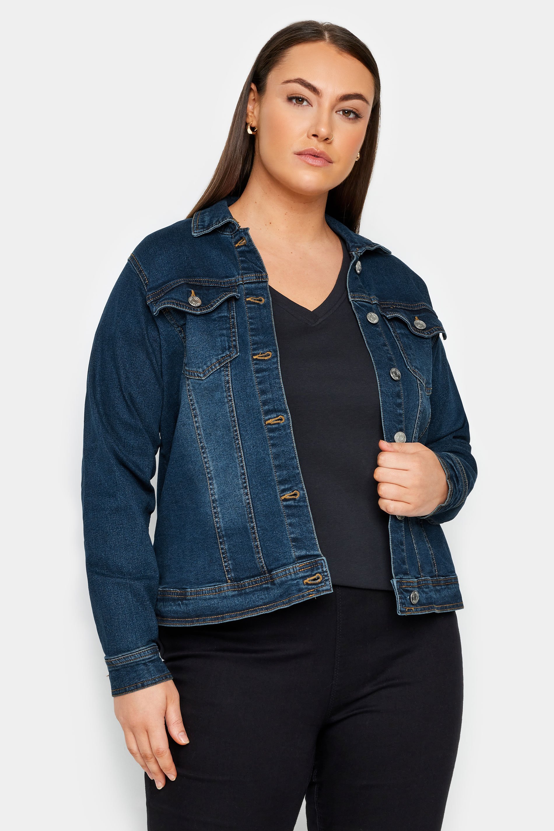 Introducing the Evans Dark Blue Wash Denim Jacket – a timeless and versatile piece for your wardrobe. This classic denim jacket in a dark blue wash is a stylish addition for any casual ensemble. Elevate your look with the enduring charm of denim, perfect for layering over dresses or pairing with your favorite jeans for an effortlessly cool vibe.