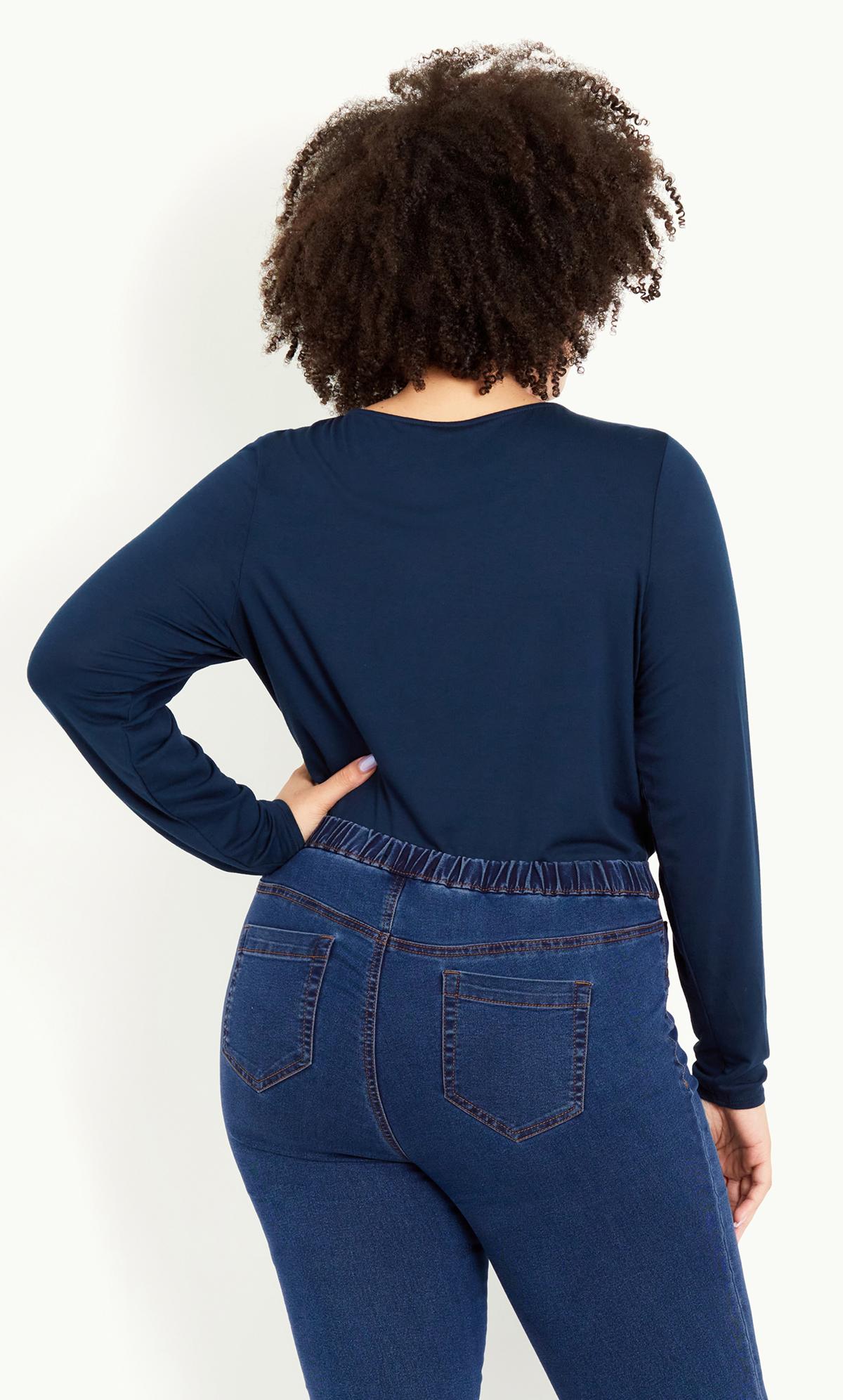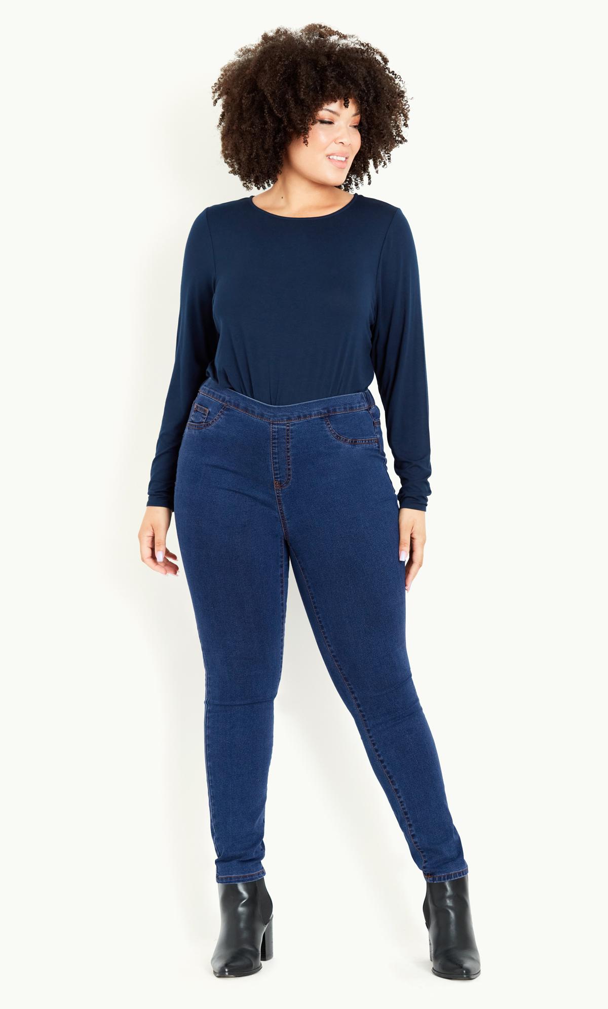 Master your everyday rotation with the Denim Jegging. Featuring a practical mid denim hue and longer length leg, these pull-on jeggings are a curve-loving favourite.