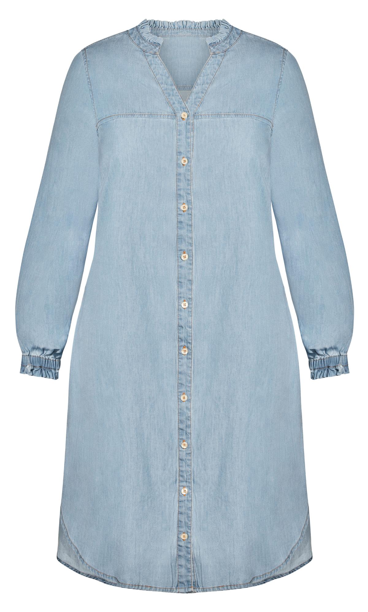 Effortlessly chic, the Avenue Mid Blue Denim Shirt Dress offers versatile style. With its mid-blue denim hue and shirt dress design, it combines casual comfort with a trendy edge. This dress is a must-have addition to your wardrobe, perfect for expressing your fashion sense while staying comfortably chic.