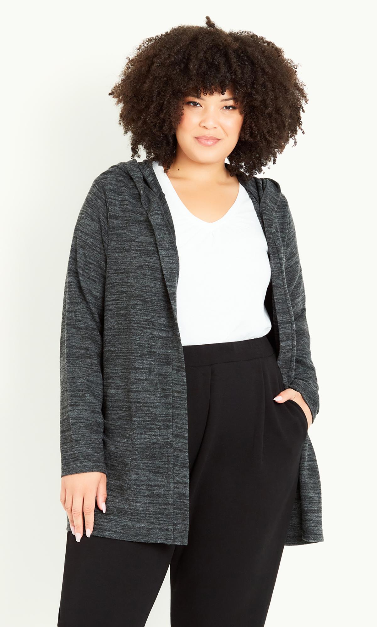 Wrap yourself in casual luxury with this new hooded cardigan. Crafted for comfort from a sumptuously soft fabric, this cardigan is perfect for lounging at home or adding a cozy layer to your everyday style. The charcoal grey hue and hooded design make it a versatile and effortlessly chic essential for any wardrobe.
