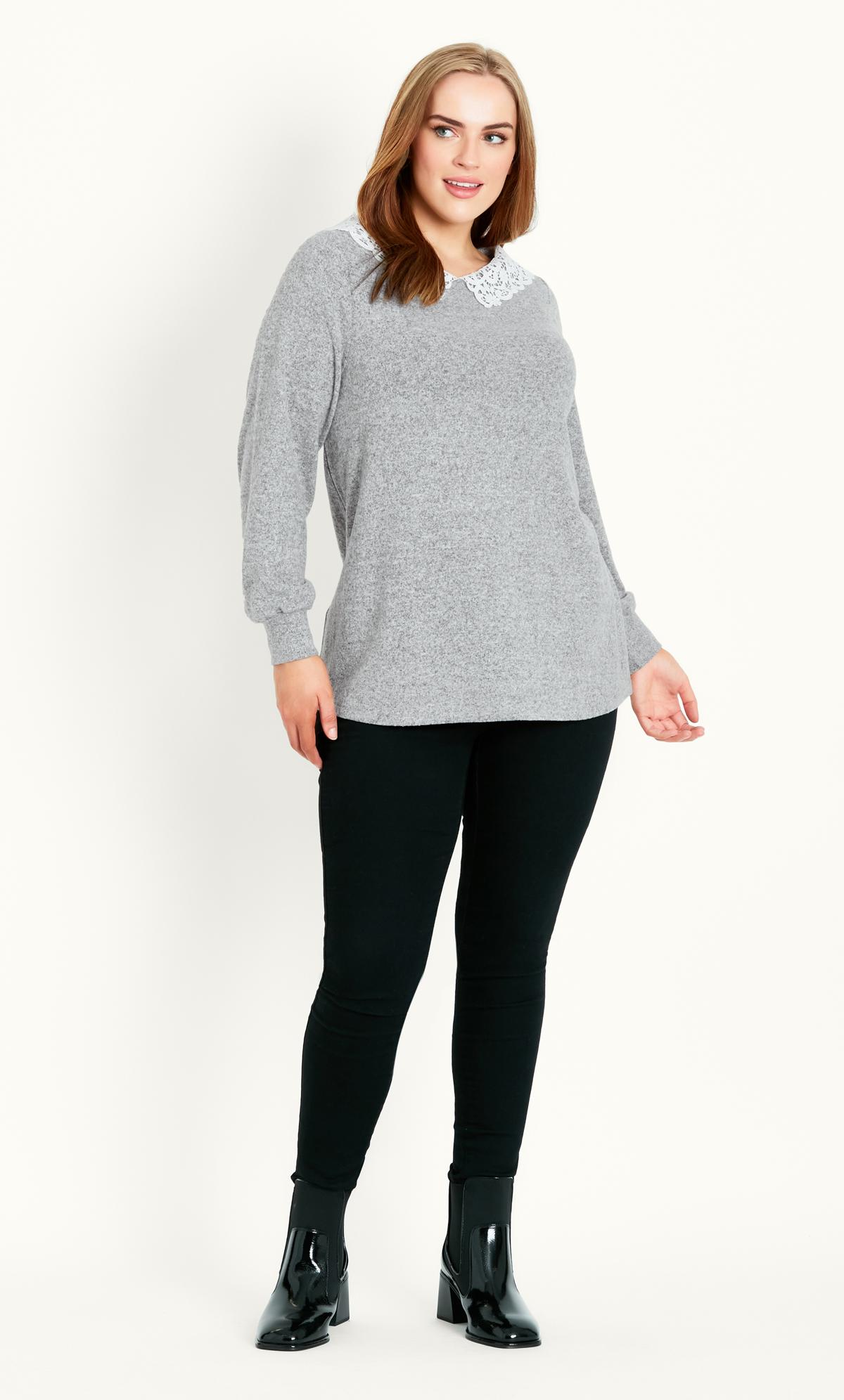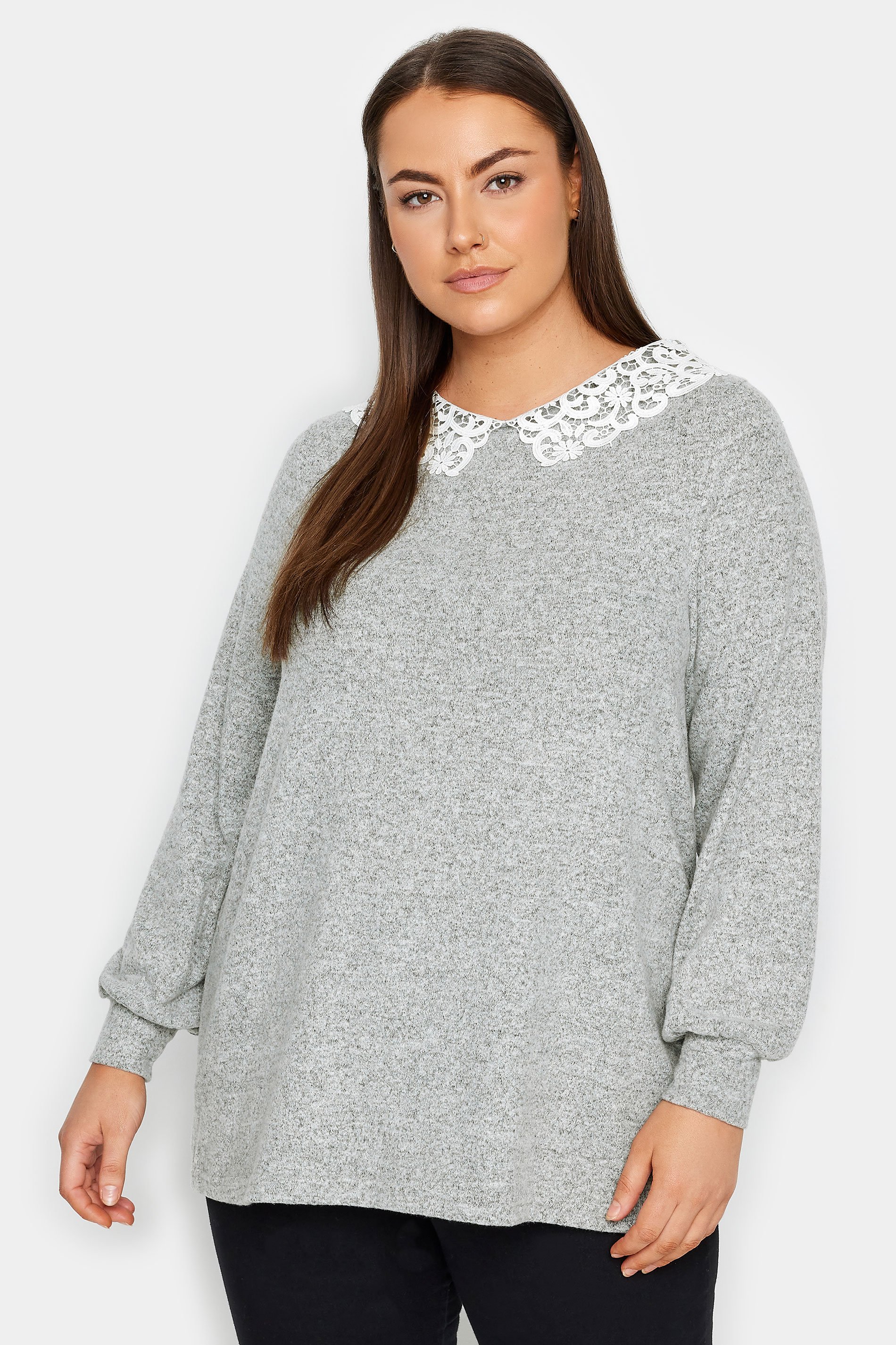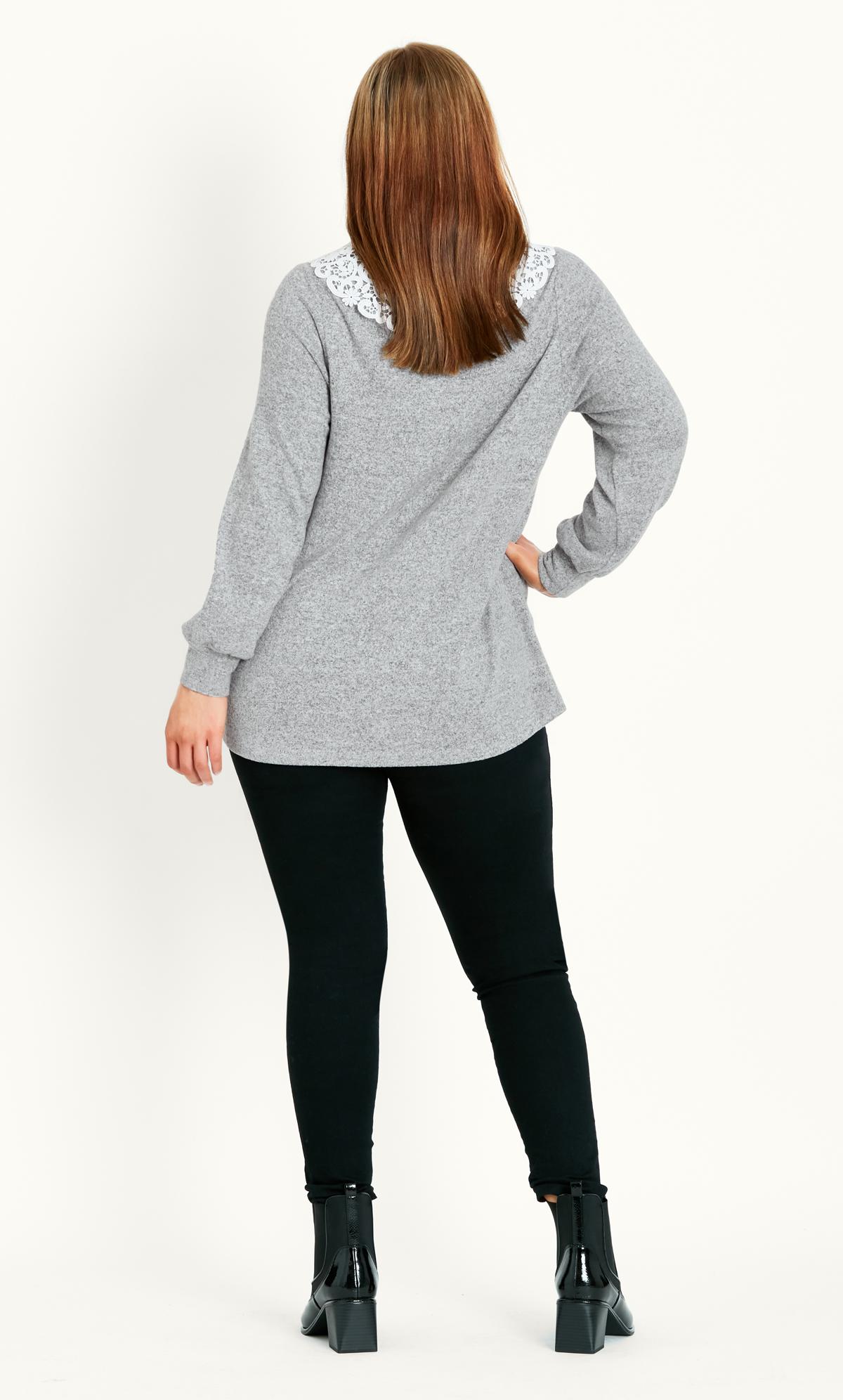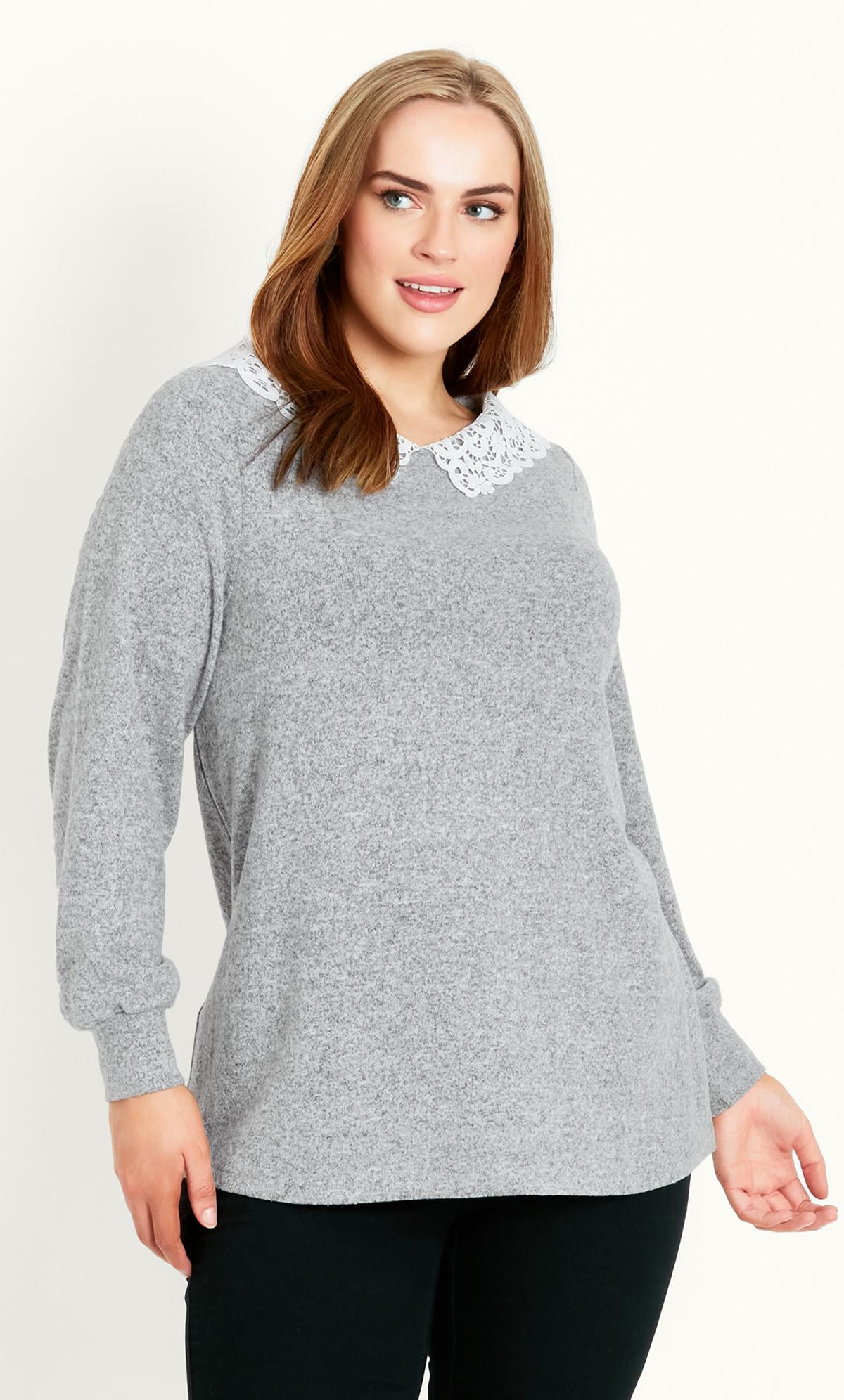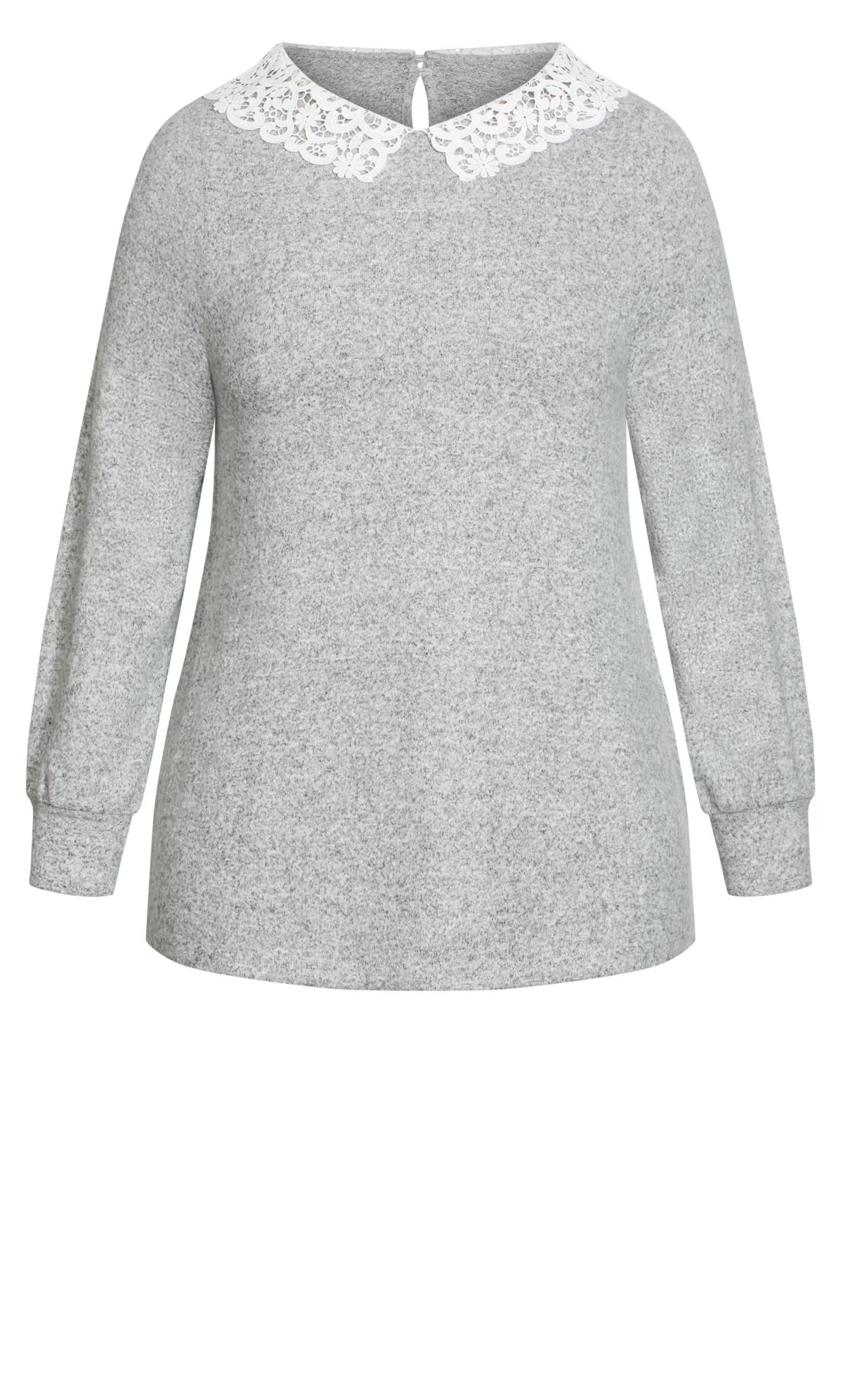 Indulge in soft sophistication with this new soft touch jumper, a versatile knit that seamlessly combines comfort and elegance. The light grey hue complements any wardrobe, while the delicate lace collar adds a feminine touch to elevate your style. Embrace a cozy and chic look, making this jumper a go-to piece for both casual and dressed-up occasions.