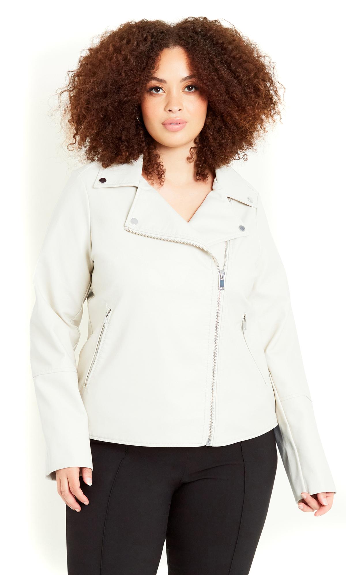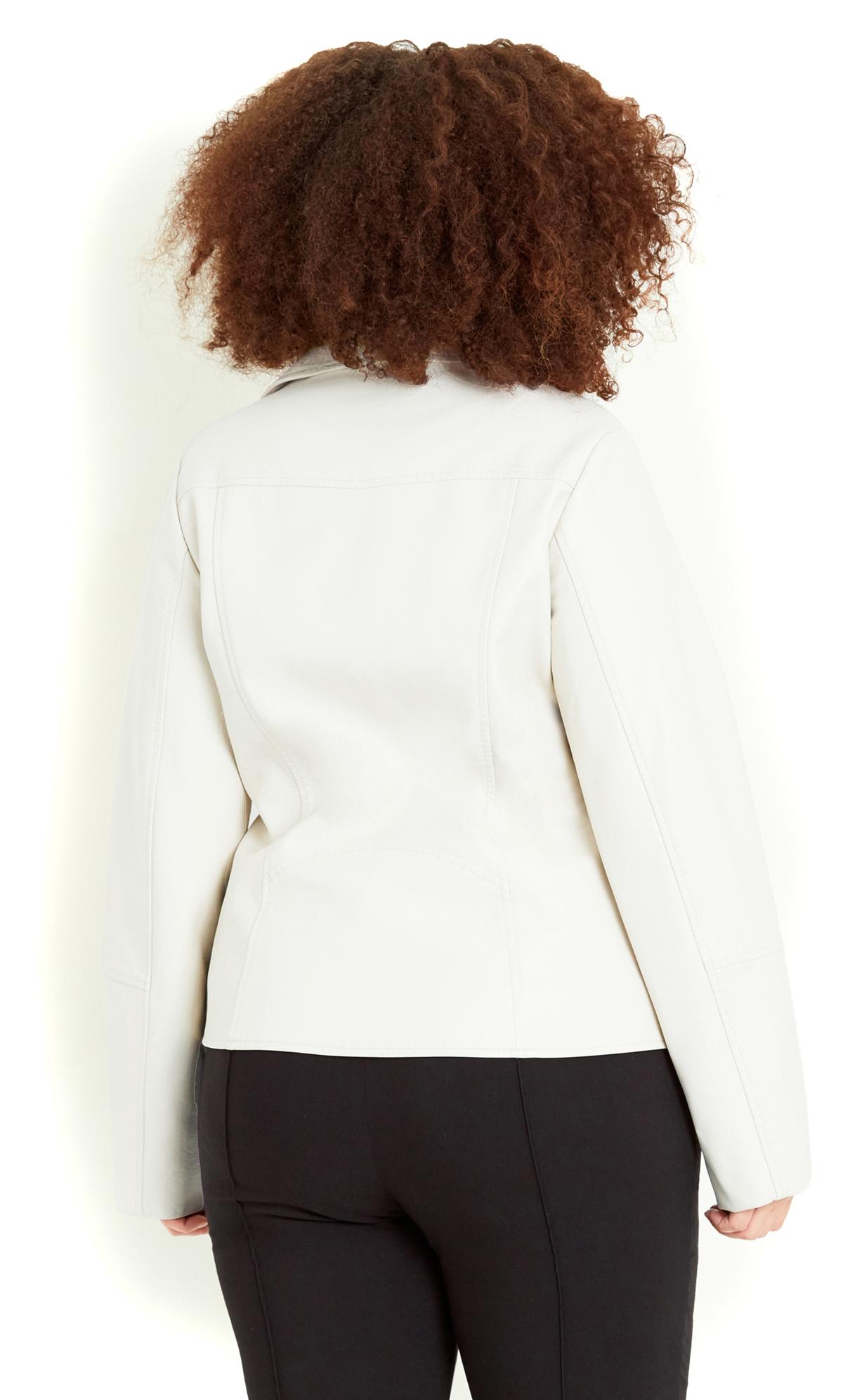 Elevate your style with the Evans White Faux Leather Jacket. This jacket features a sleek white faux leather exterior, adding a touch of contemporary sophistication to your ensemble. With its versatile design, it effortlessly complements various outfits, making it a chic addition to your wardrobe for both casual and dressy occasions.