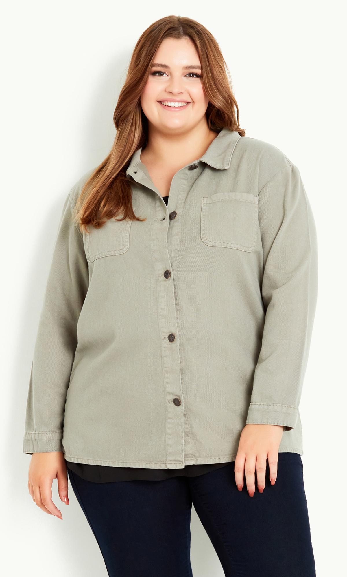 Experience the intersection of comfort and style with the Evans Khaki Green Button Shacket. Crafted in a versatile khaki green hue, this piece merges the relaxed fit of a shirt with the sturdiness of a jacket, offering a chic layering solution. Finished with sleek buttons, this shacket is the ultimate choice for those seeking a blend of functionality and trend-forward design.