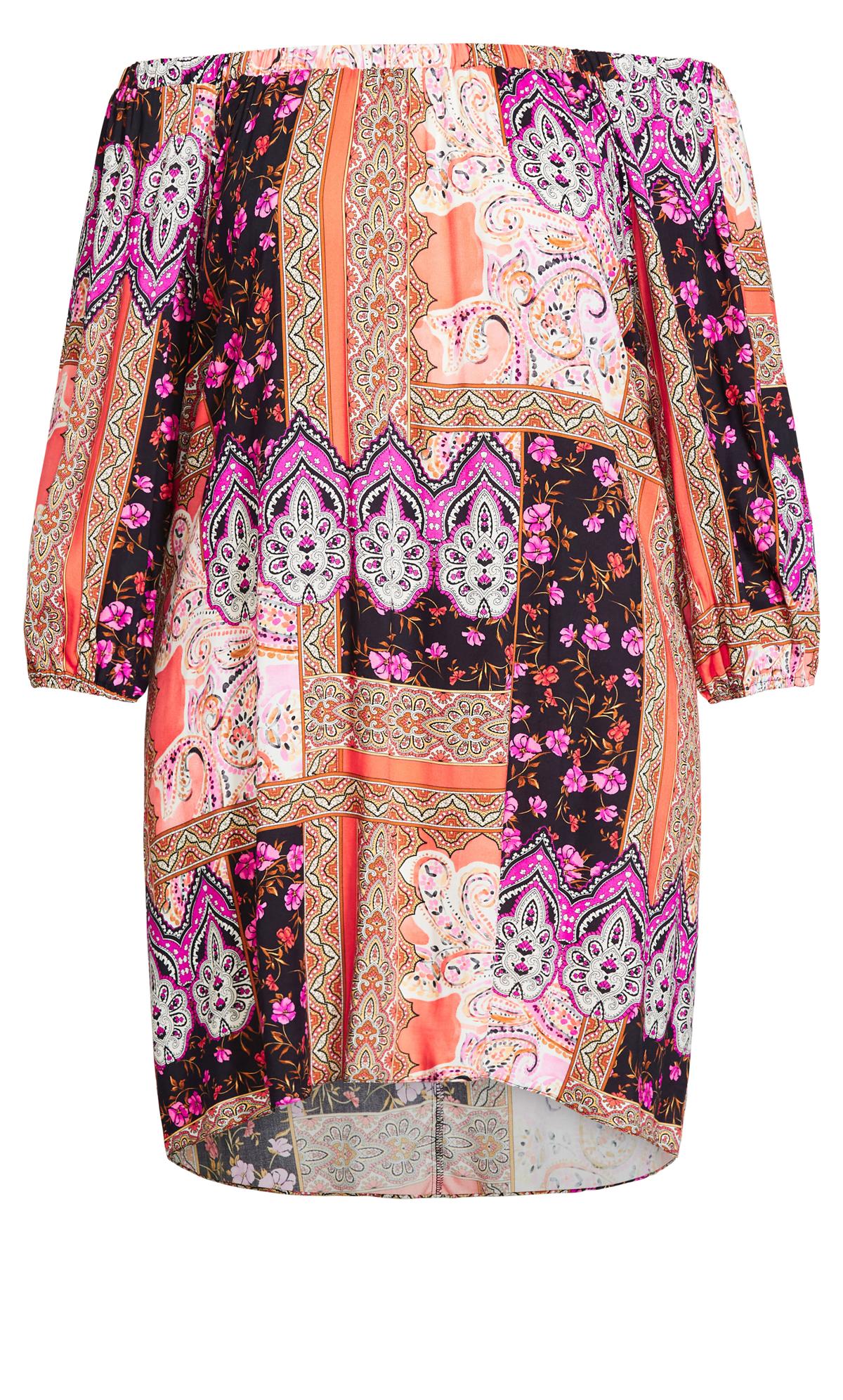 Elevate your look with the Evans Black Paisley Floral Print Bardot Tunic. This tunic effortlessly combines bohemian charm with a touch of elegance, featuring a captivating paisley floral print and a flattering bardot neckline. The classic black hue adds versatility, making it suitable for both casual outings and dressed-up occasions. Embrace the fusion of patterns and sophistication with this black paisley floral print bardot tunic from Evans that seamlessly blends comfort and style for a standout ensemble.