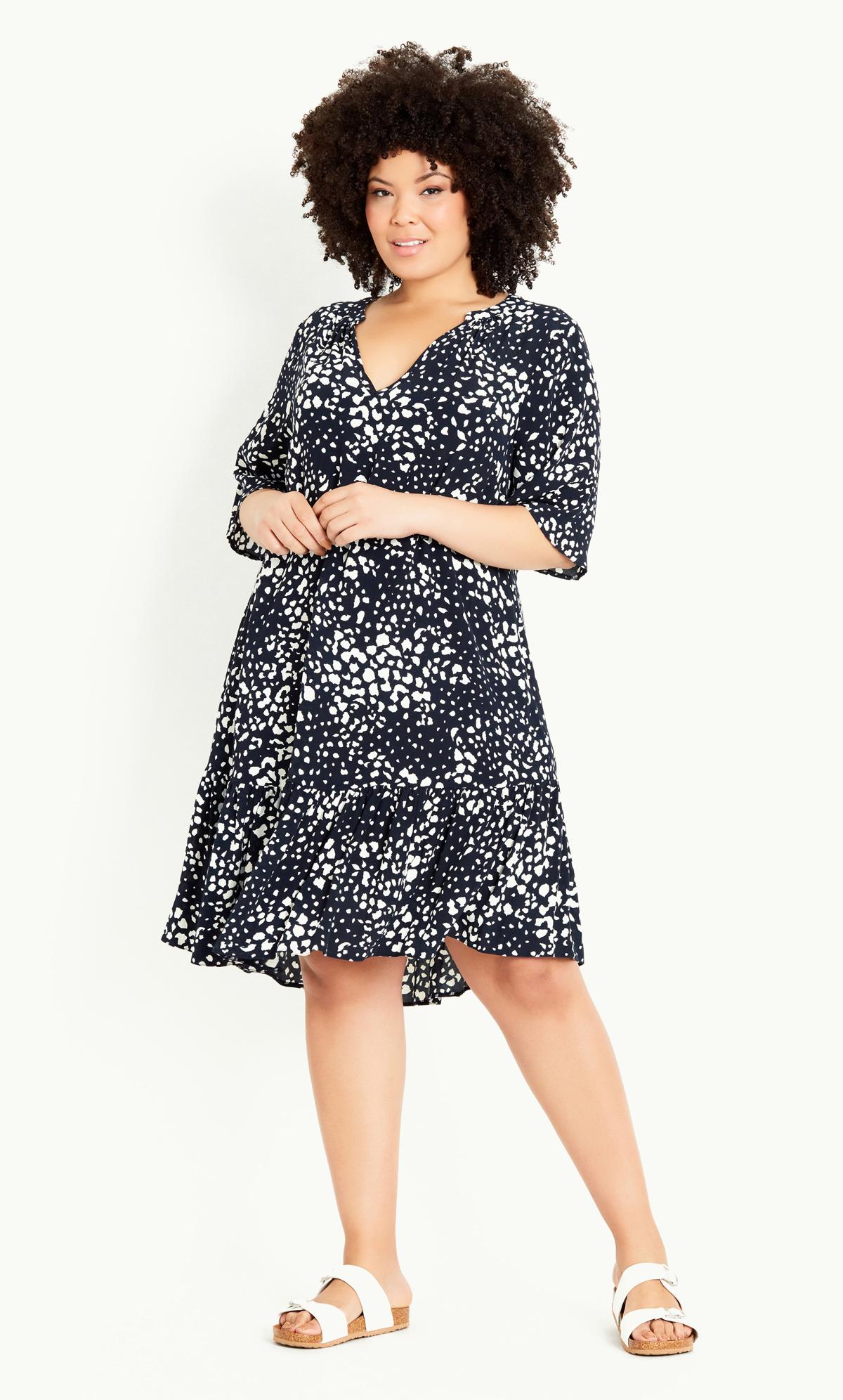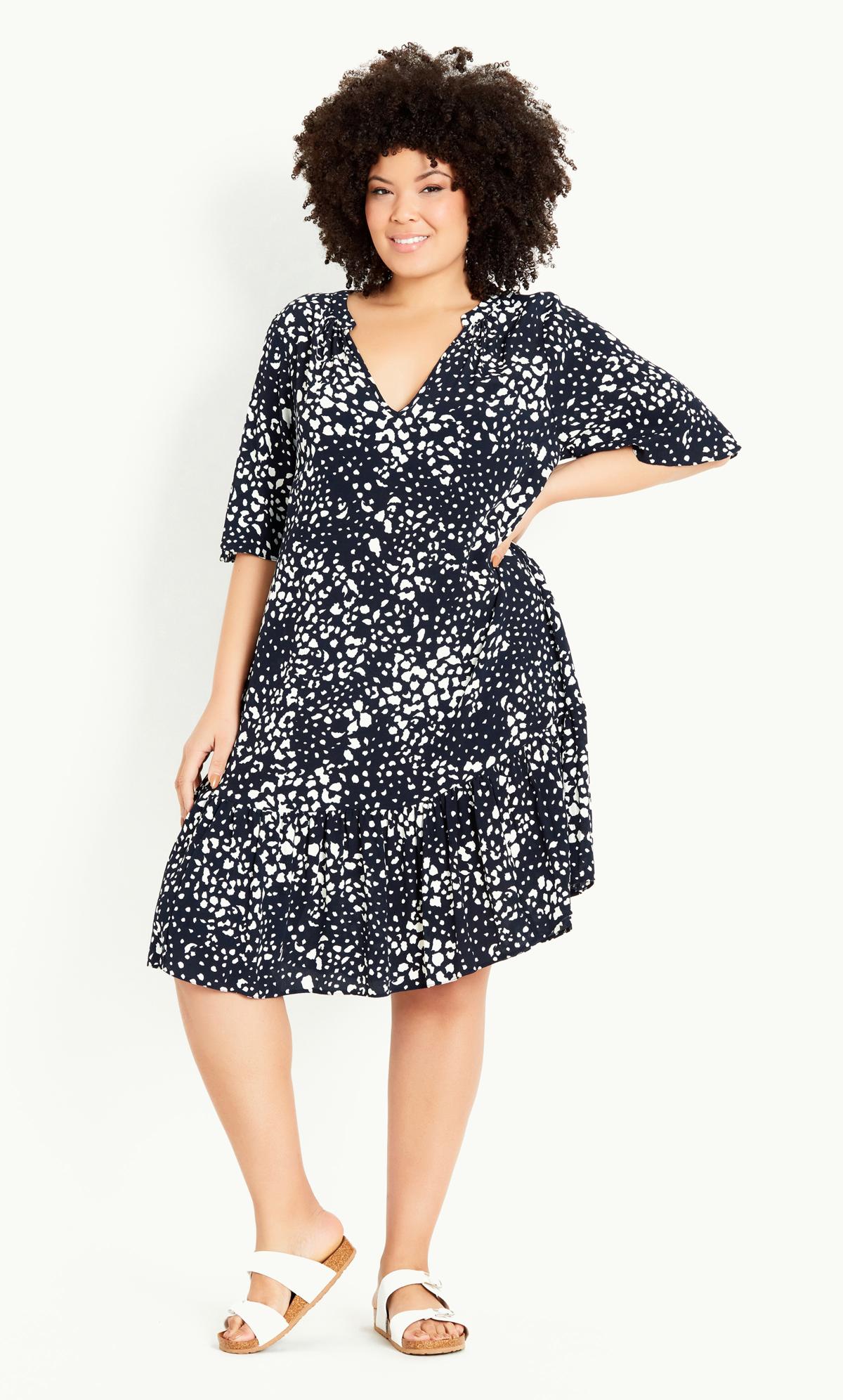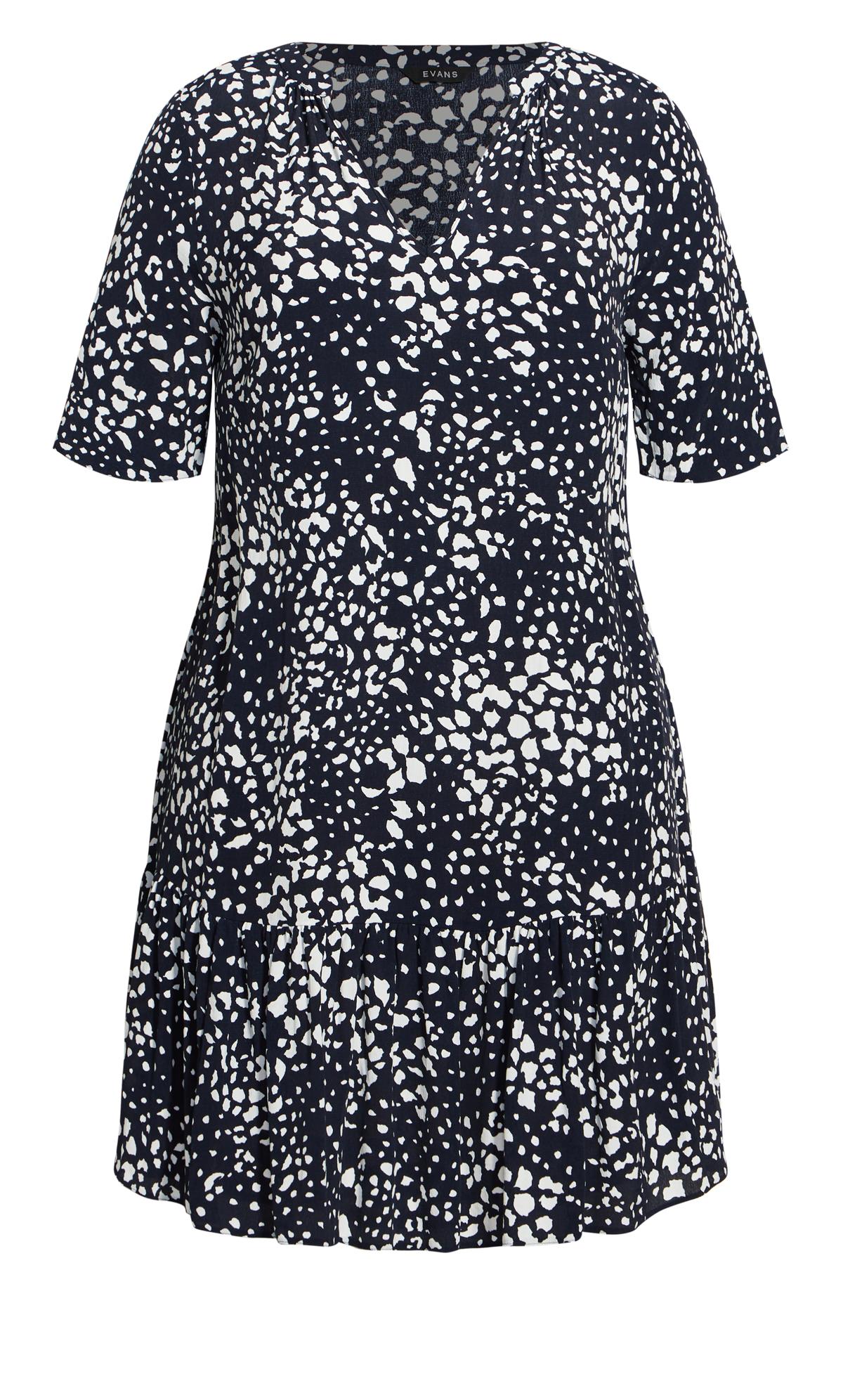 Embrace your wild side with Evans' Black Animal Print Smock Dress. The classic black hue meets a fierce animal print, creating a captivating and stylish ensemble. With a comfortable smock design, this dress effortlessly balances comfort and fashion, making it a must-have for adding a touch of boldness to your look.