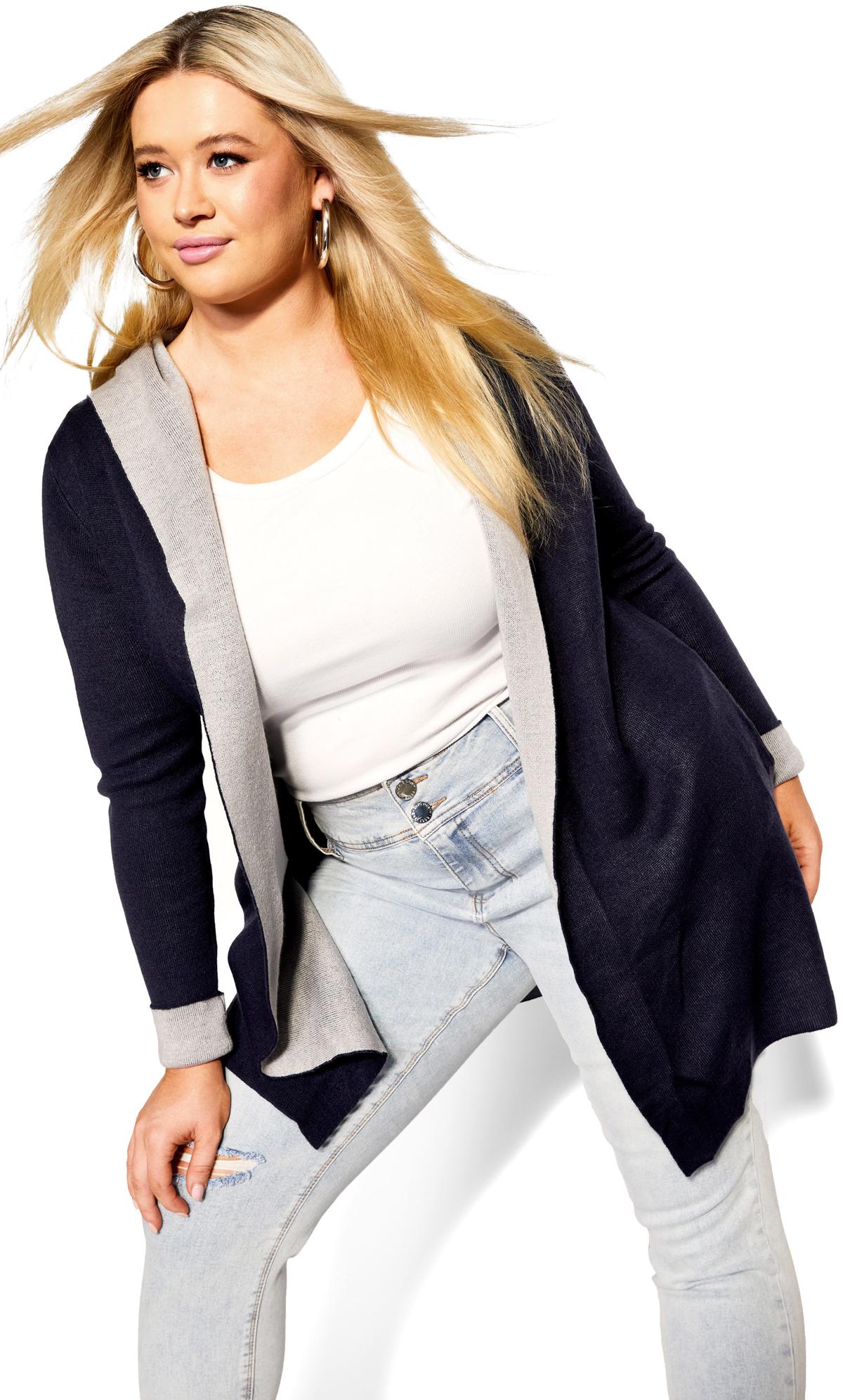 Discover comfort and style with this hooded cardigan. Crafted from a soft knitted fabric, this longline cardigan features a hood for added versatility and a timeless navy hue that effortlessly complements any outfit. Elevate your casual wardrobe with this essential piece, offering both coziness and a fashion-forward flair.