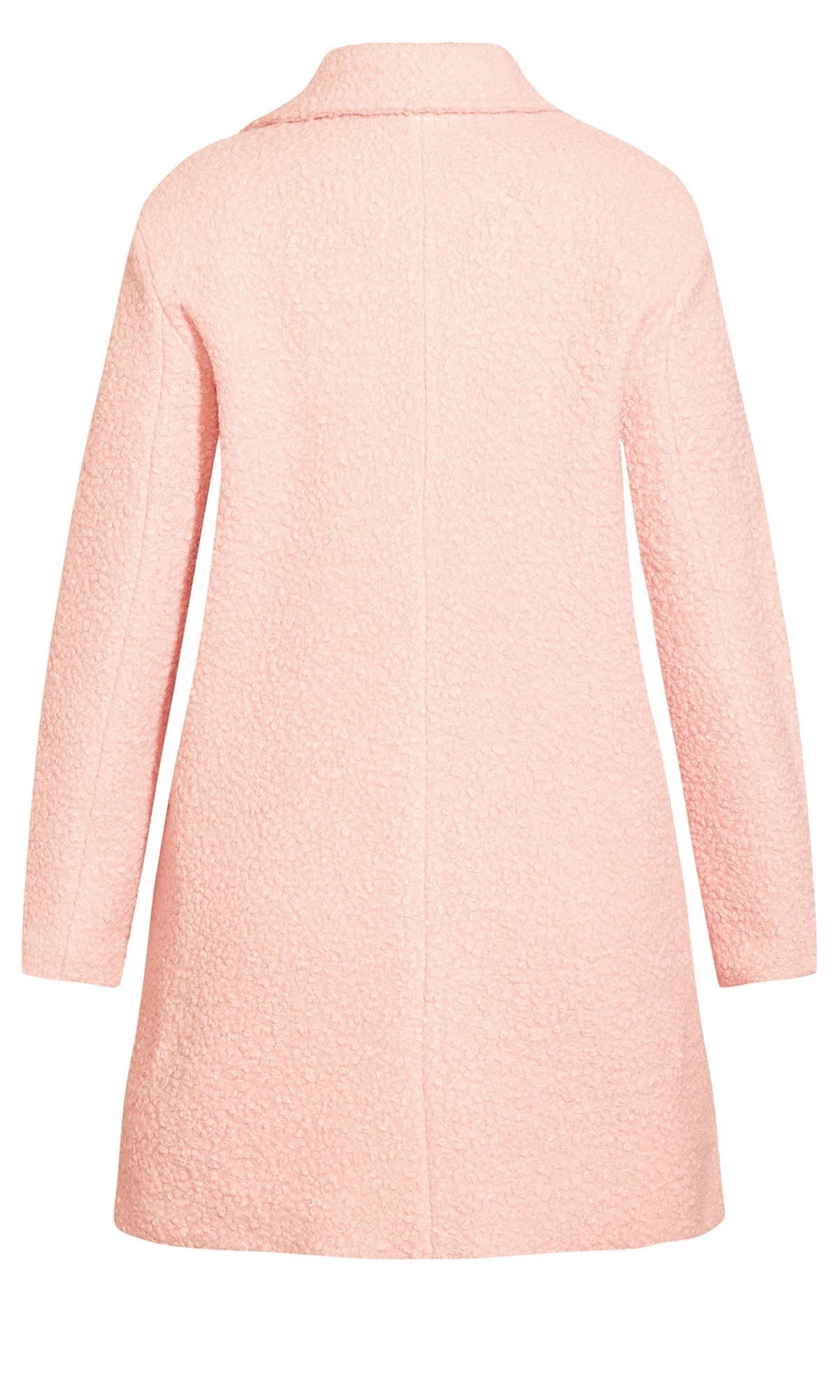 Elevate your urban wardrobe with the Evans Pink Boucle City Coat. The coat's soft pink boucle fabric adds a touch of sophistication and warmth to your ensemble. With its tailored design and contemporary flair, it's perfect for city life. Whether layered over professional attire or paired with casual outfits, this coat brings a blend of elegance and comfort to your cold-weather style, making it a must-have addition to your collection.