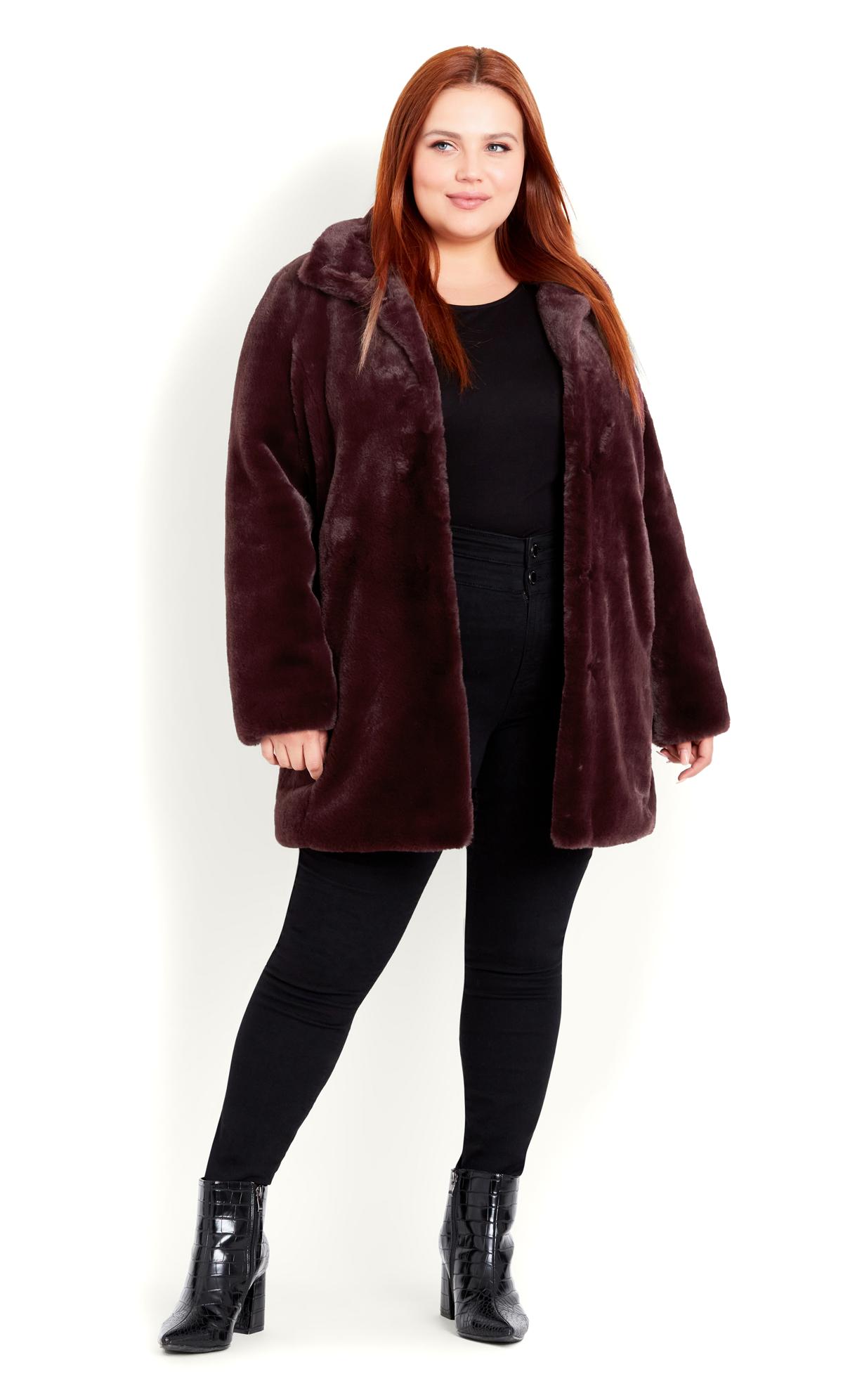 Elevate your winter wardrobe with the Evans Burgundy Red Faux Fur Coat. Its luxurious faux fur texture and deep burgundy hue exude sophistication and warmth. Embrace chic and cozy style with the Evans Burgundy Red Faux Fur Coat, a statement piece for colder days.