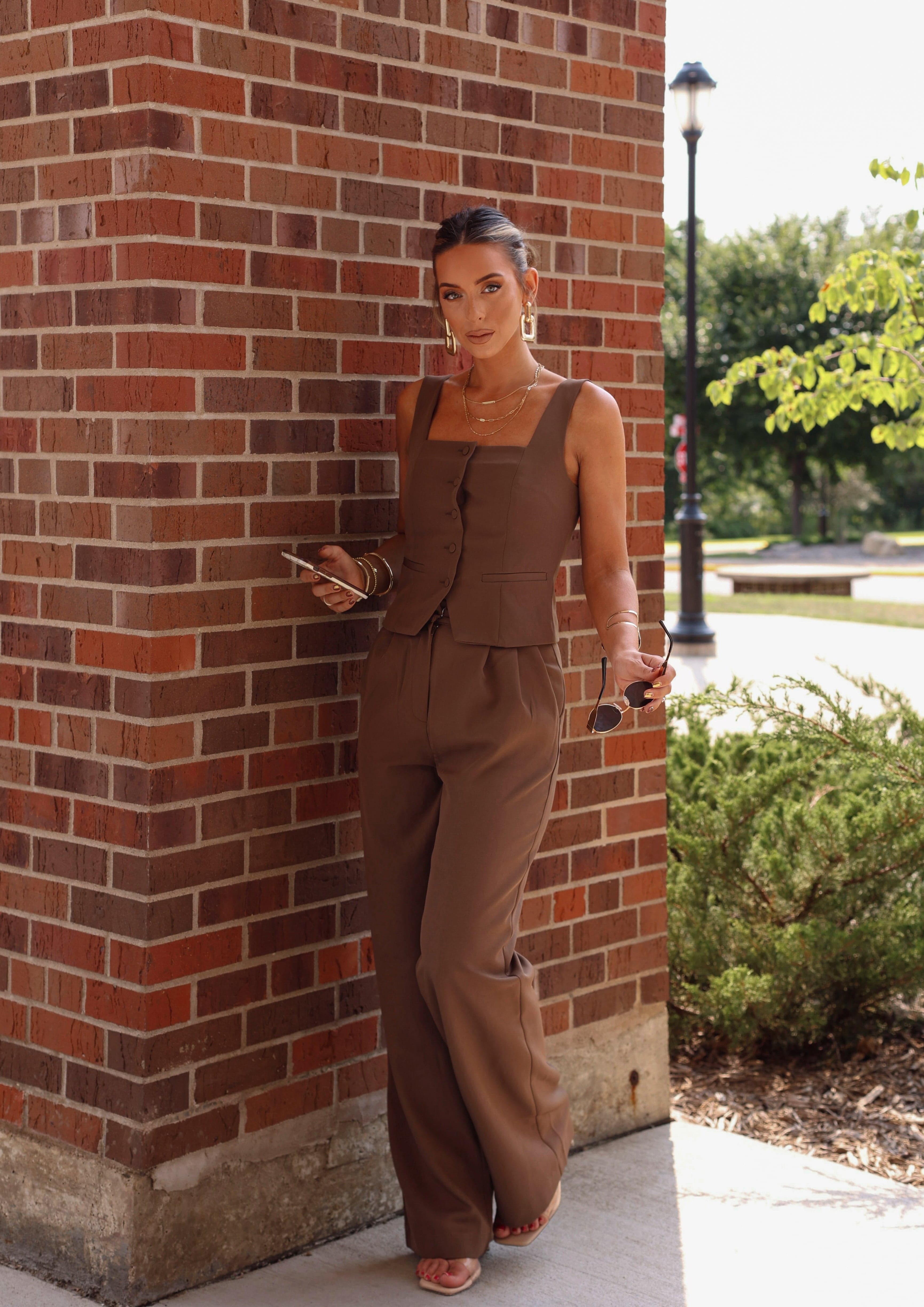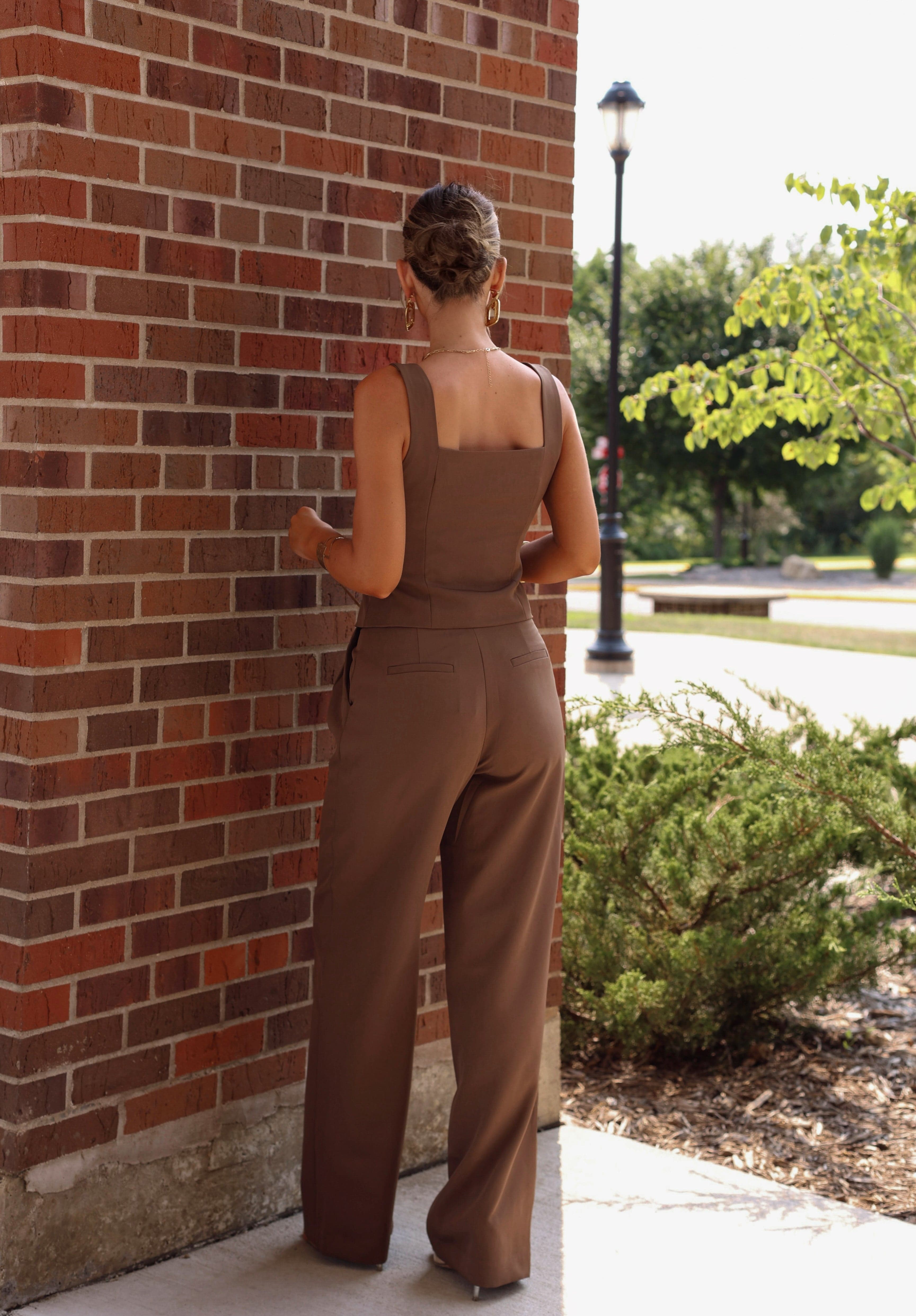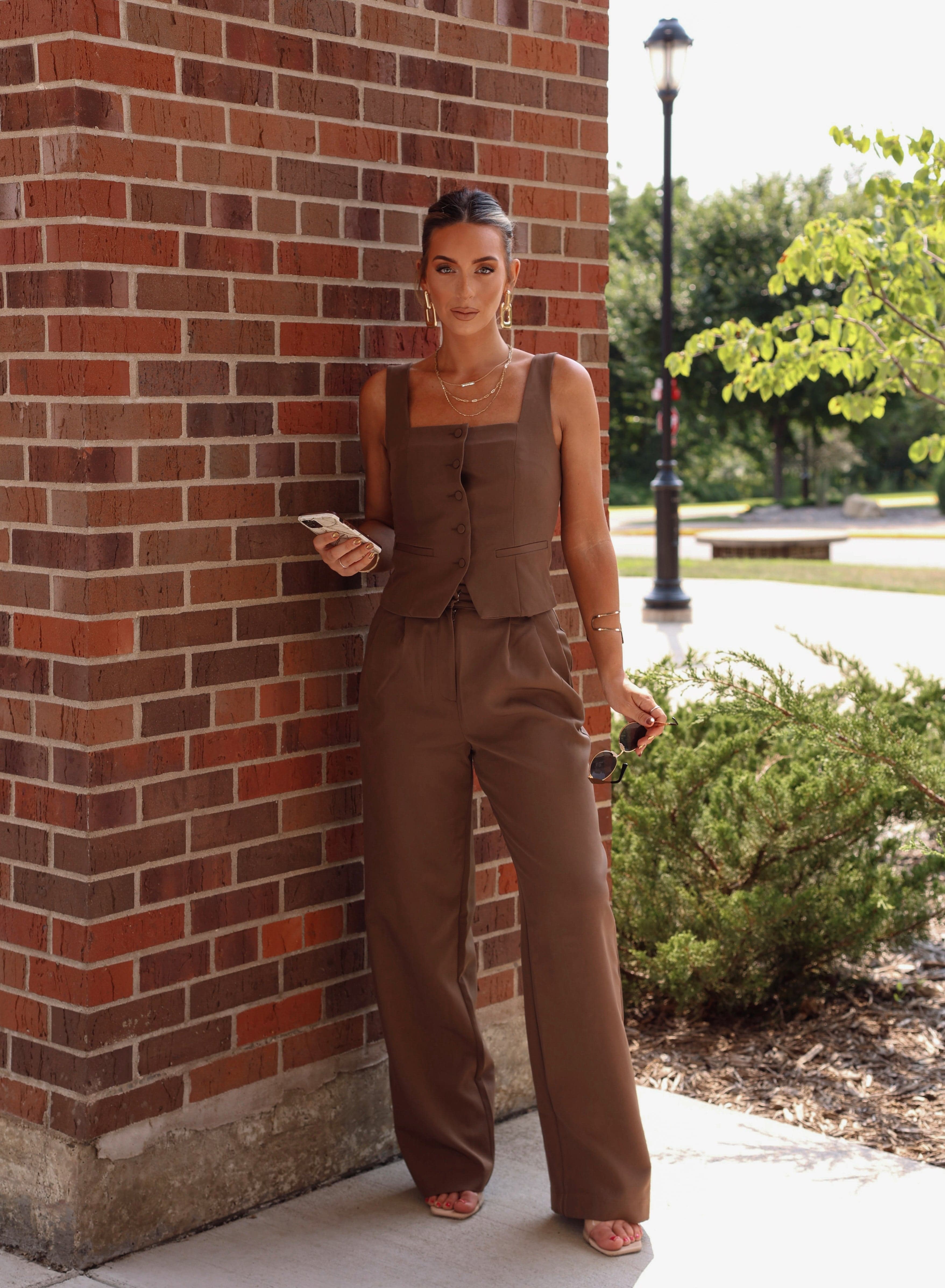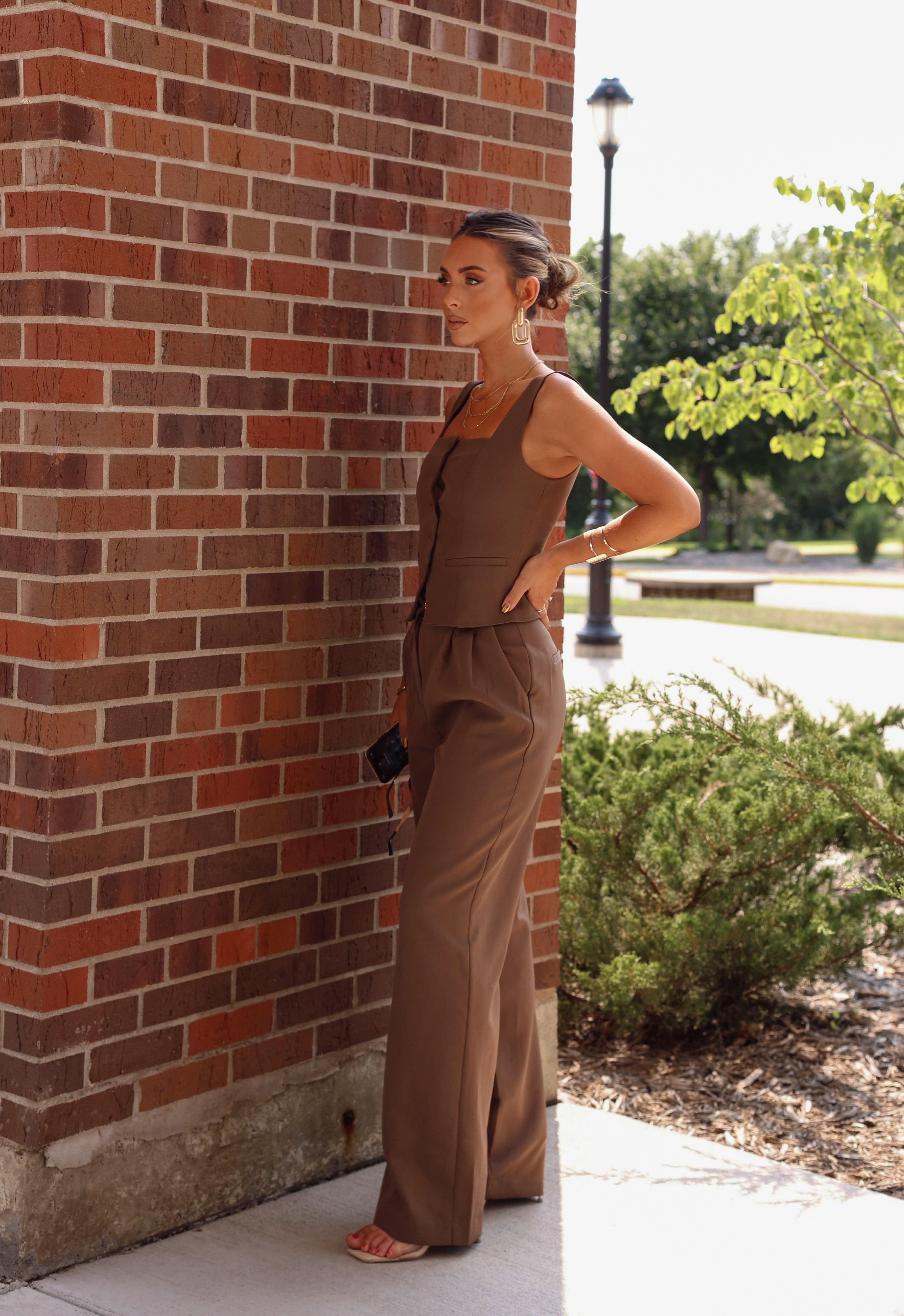 Keep your eyes set on these pants, part of a charmingly coordinated set with a tailored top. In versatile brown, these Eyes Set On You Pants are perfect for work or play. Stay stylish without compromising on comfort!