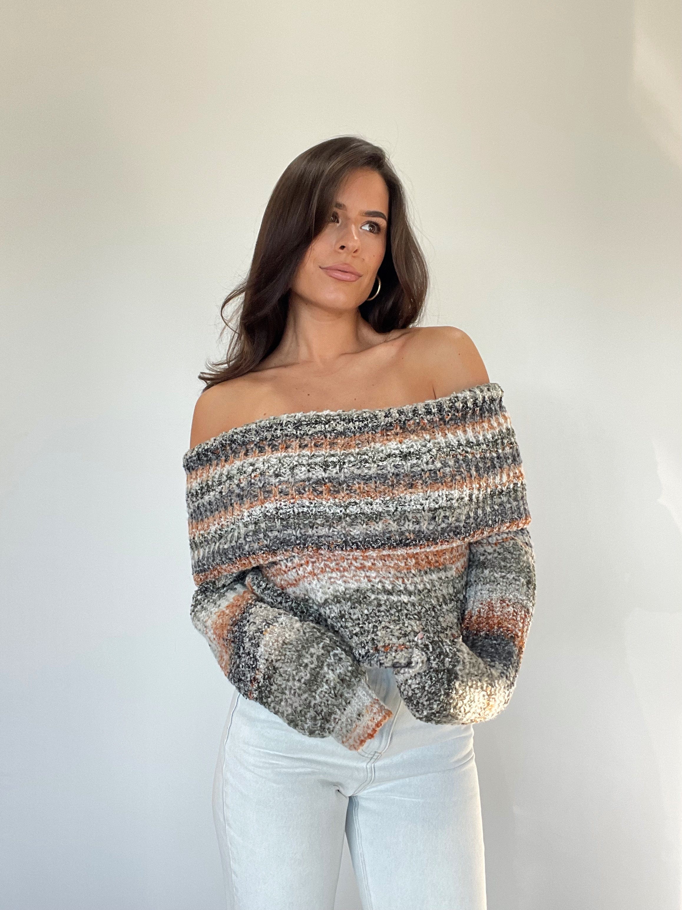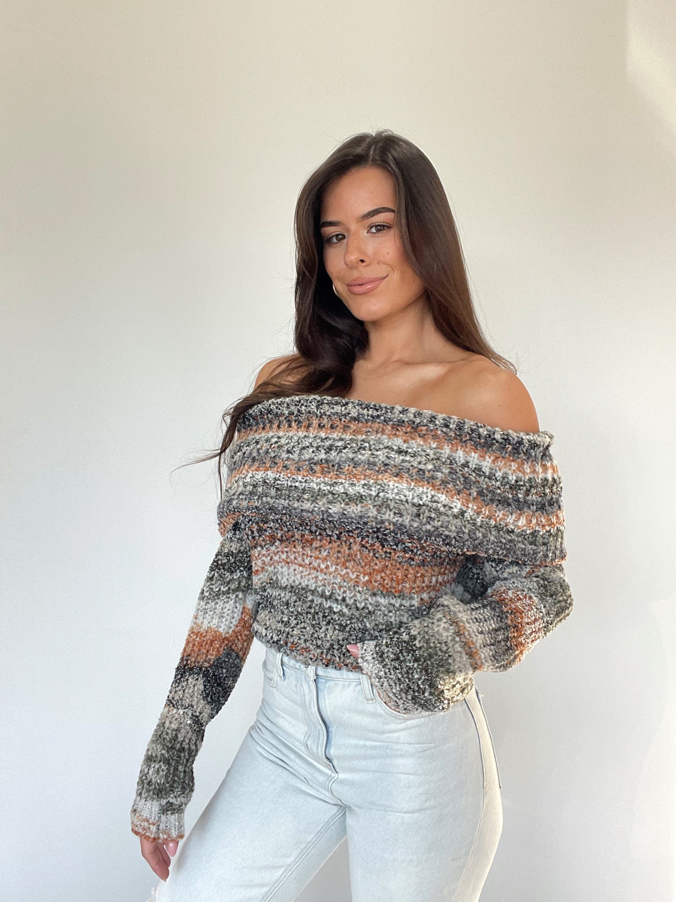 Elevate your winter wardrobe with the Falling Hard Sweater. Featuring an off-shoulder design and long sleeves, this knit sweater is both stylish and comfortable. With its unique multicolor pattern, it adds a pop of color to any outfit. Stay warm and fashionable this season with this must-have piece.