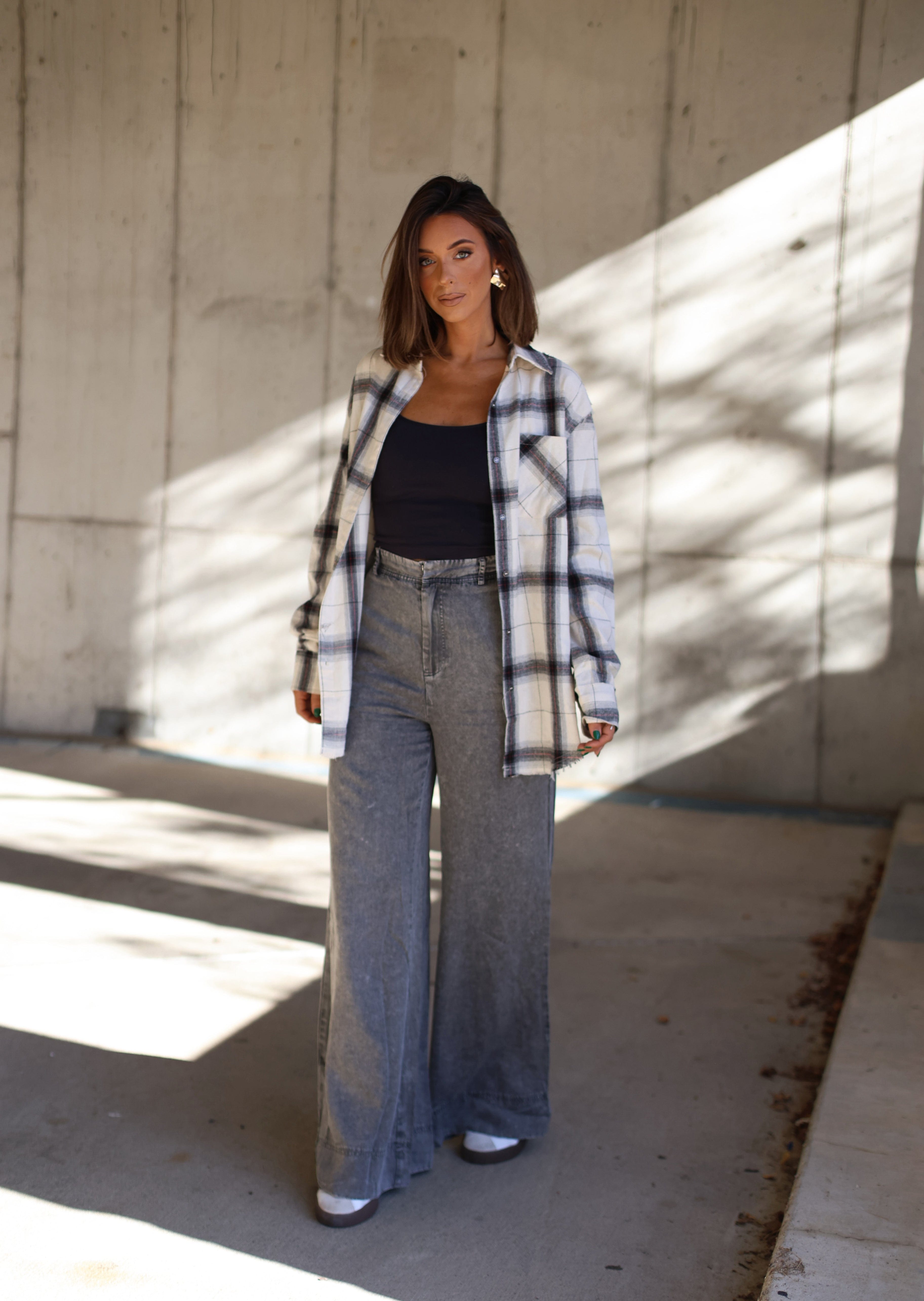 Our Falling Leaves Flannel is the perfect way to add a luxurious touch to your wardrobe this fall. Crafted from a soft, cozy flannel fabric in a classic plaid print, this piece features a collared neckline, button closures, and pocket detailing for a relaxed fit. Finished with a frayed hem detail, this transitional piece is a trendy staple for brunch, campfire, and smores gatherings.