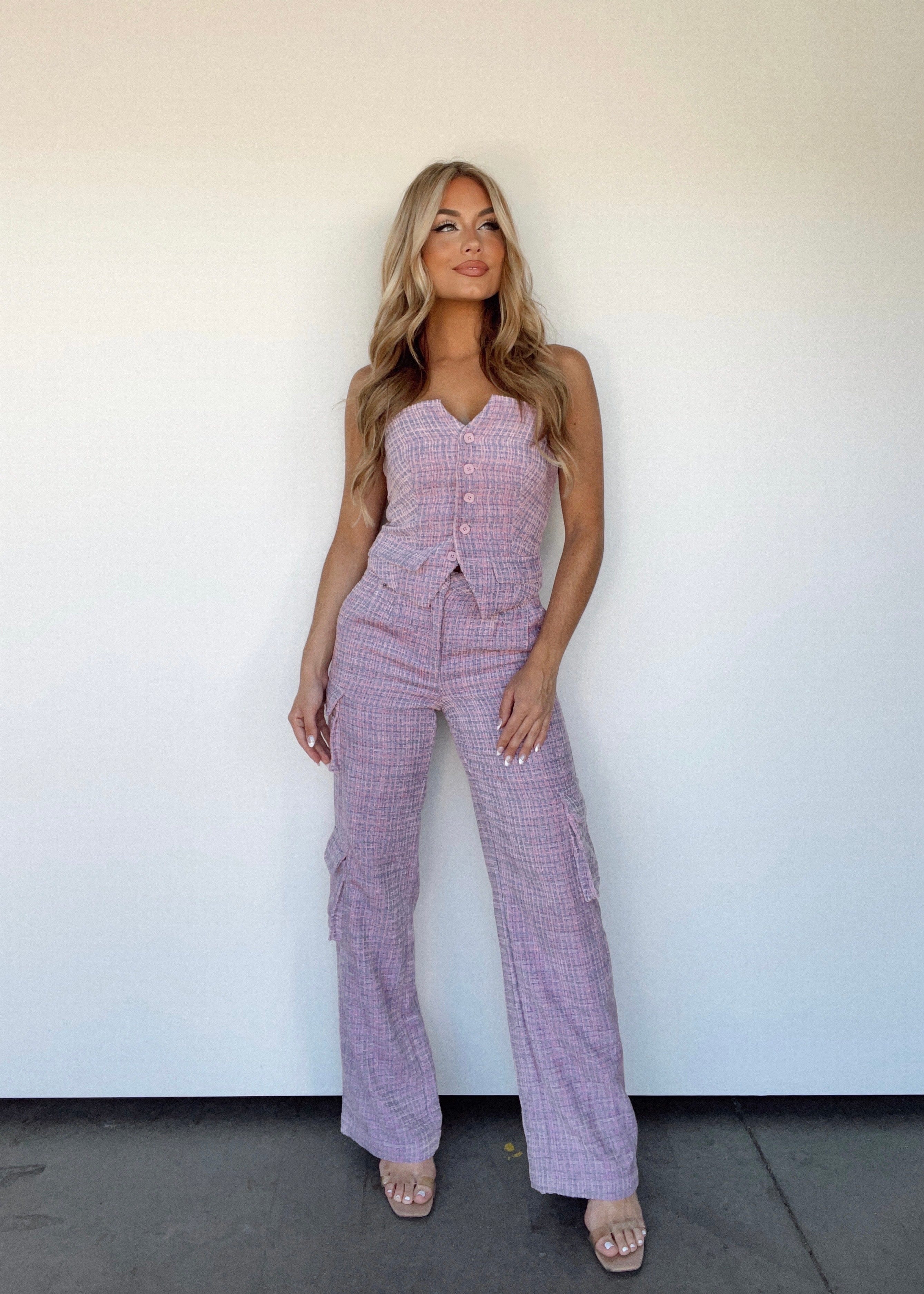 Introducing Fashionista Cargo Pants, the perfect statement piece for the modern business woman. These high waisted tweed pants combine a classic, plaid pattern with a bright, vibrant pop of color and prominent cargo pocket details that exude sophistication and style. The straight leg design, coinciding with their elevated and trendy attributes, create the perfect piece for work wear, dinner, or drinks. Confidently express your power and femininity with these boss babe essentials.