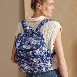 There's no better way to accommodate your day than by carrying a colorful cotton Campus Backpack. It truly is the one we can't live without — and it was recently redesigned to be even better with even more padding in the back and straps and a new shape specially designed to accommodate a woman's shape.- Exterior features two side slip pockets, a u-shaped front zip compartment with a front zip pocket and a hidden back zip pocket