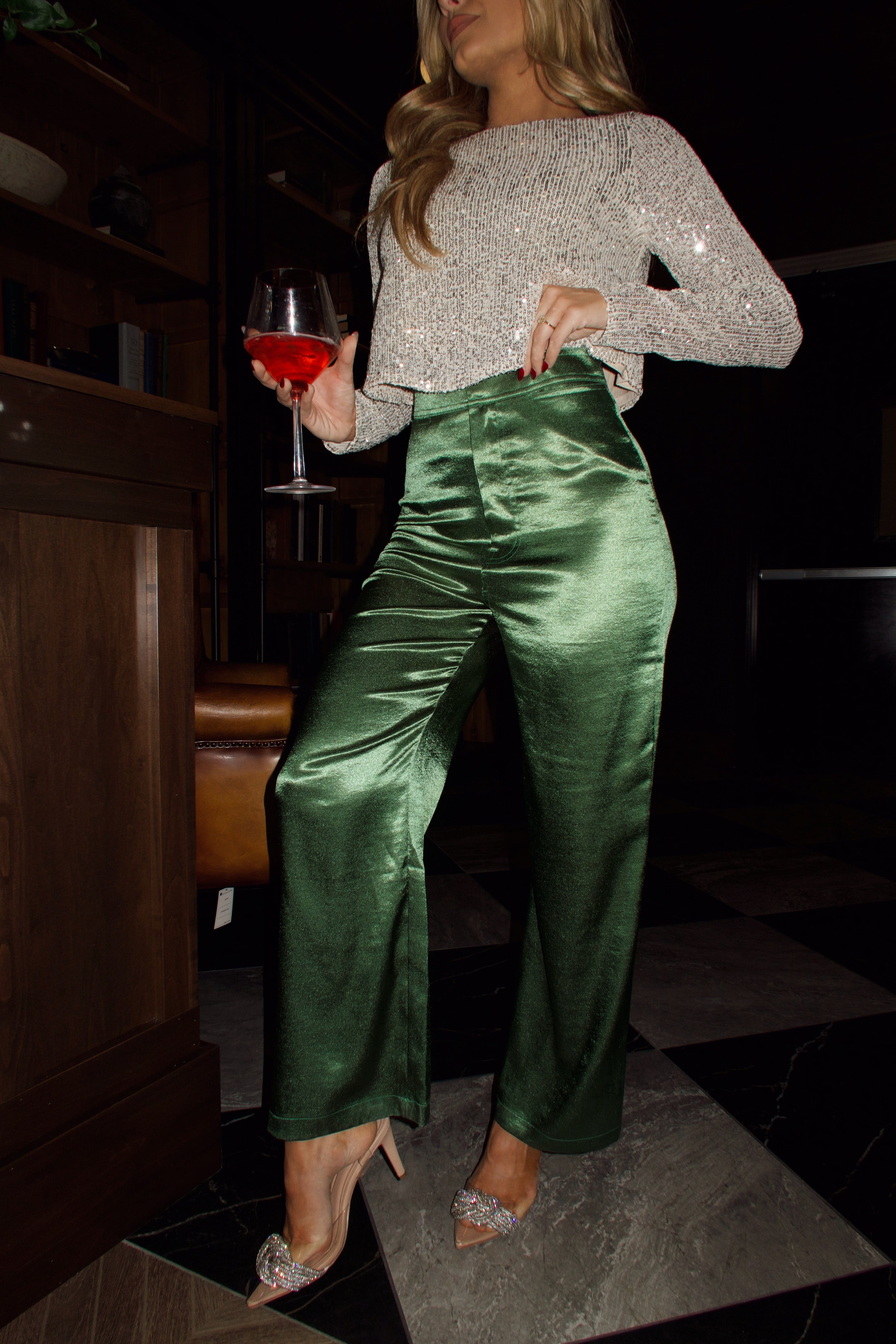 These Feeling Festive Pants are crafted from luxurious satin for a sophisticated, polished look. The pleated style and pocket details add a hint of modern elegance, while the high waisted fit and comfortable feel create a timelessly chic look. With an elevated pop of color, these pants are perfect for both professional meetings and holiday parties alike.