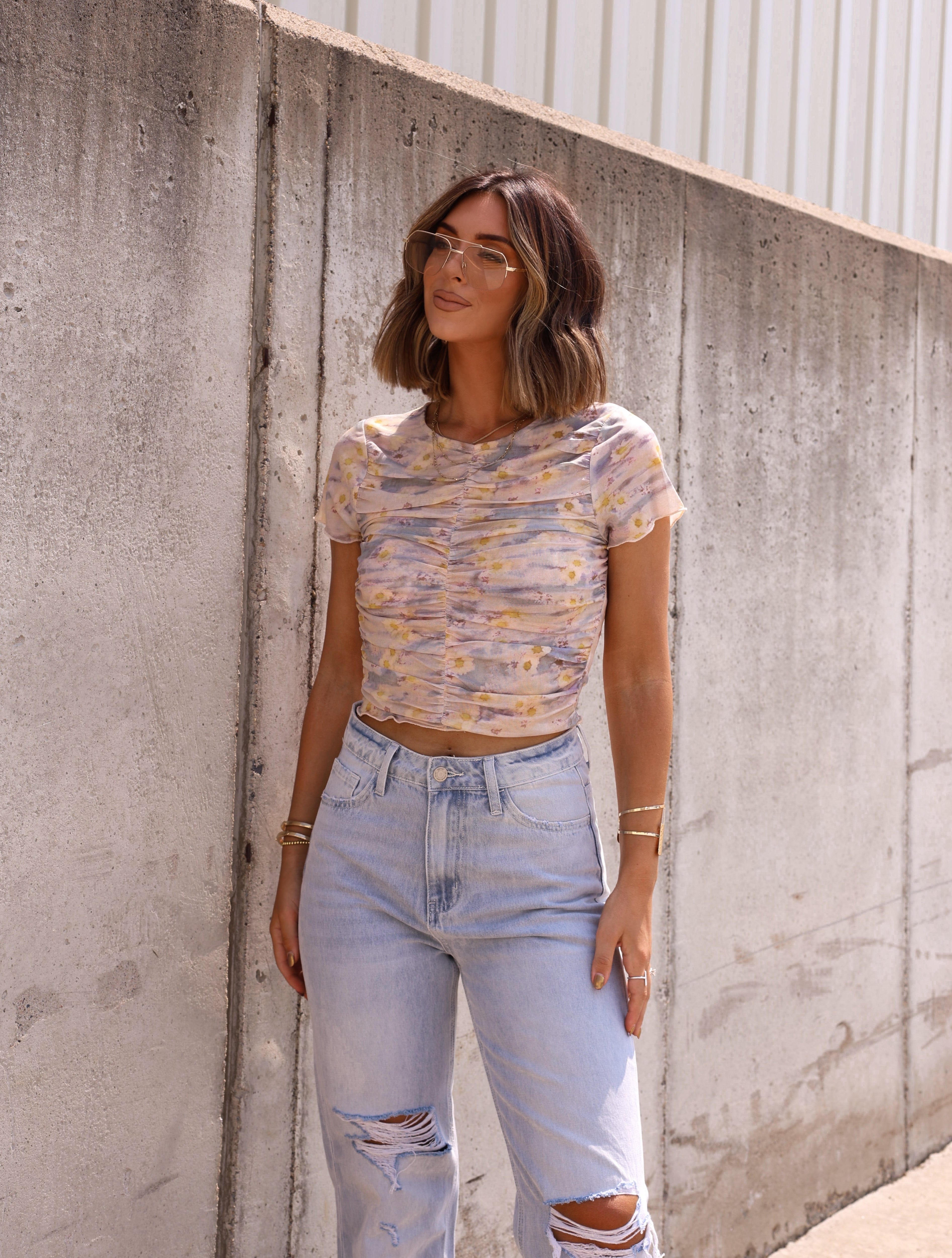 Effortlessly elevate your wardrobe with our Floral Feeling Top. This beige short sleeve top features ruching down the middle for a flattering look and all over floral details for a touch of playfulness. Perfect for any occasion, this top will have you feeling and looking rosy!