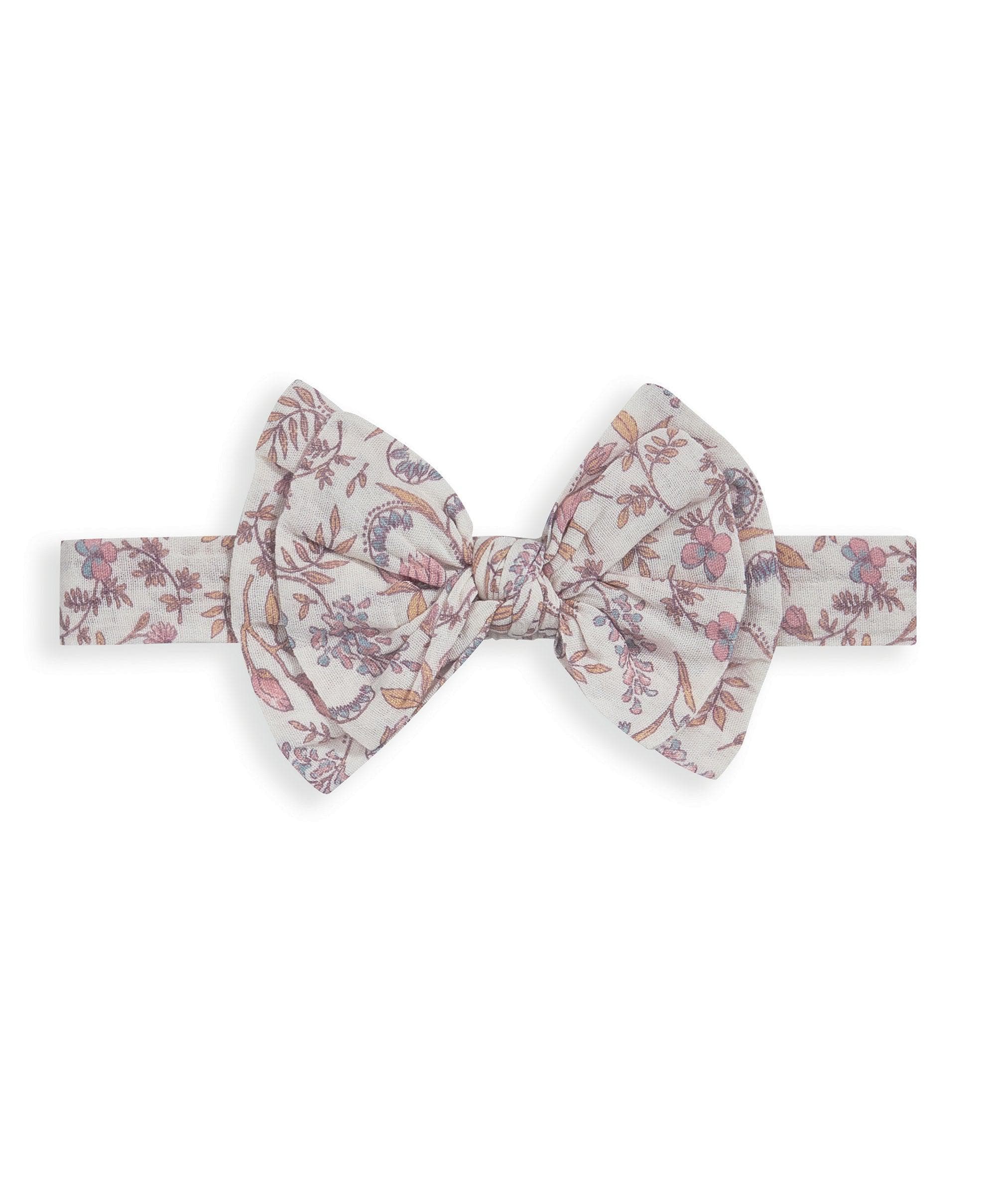 Floral headband. With elasticated back for a comfy fit. Soft touch quick release velcro means it's easy to adjust and feels comfy. Finished with knot detail. Made from lightweight woven 100% cotton.