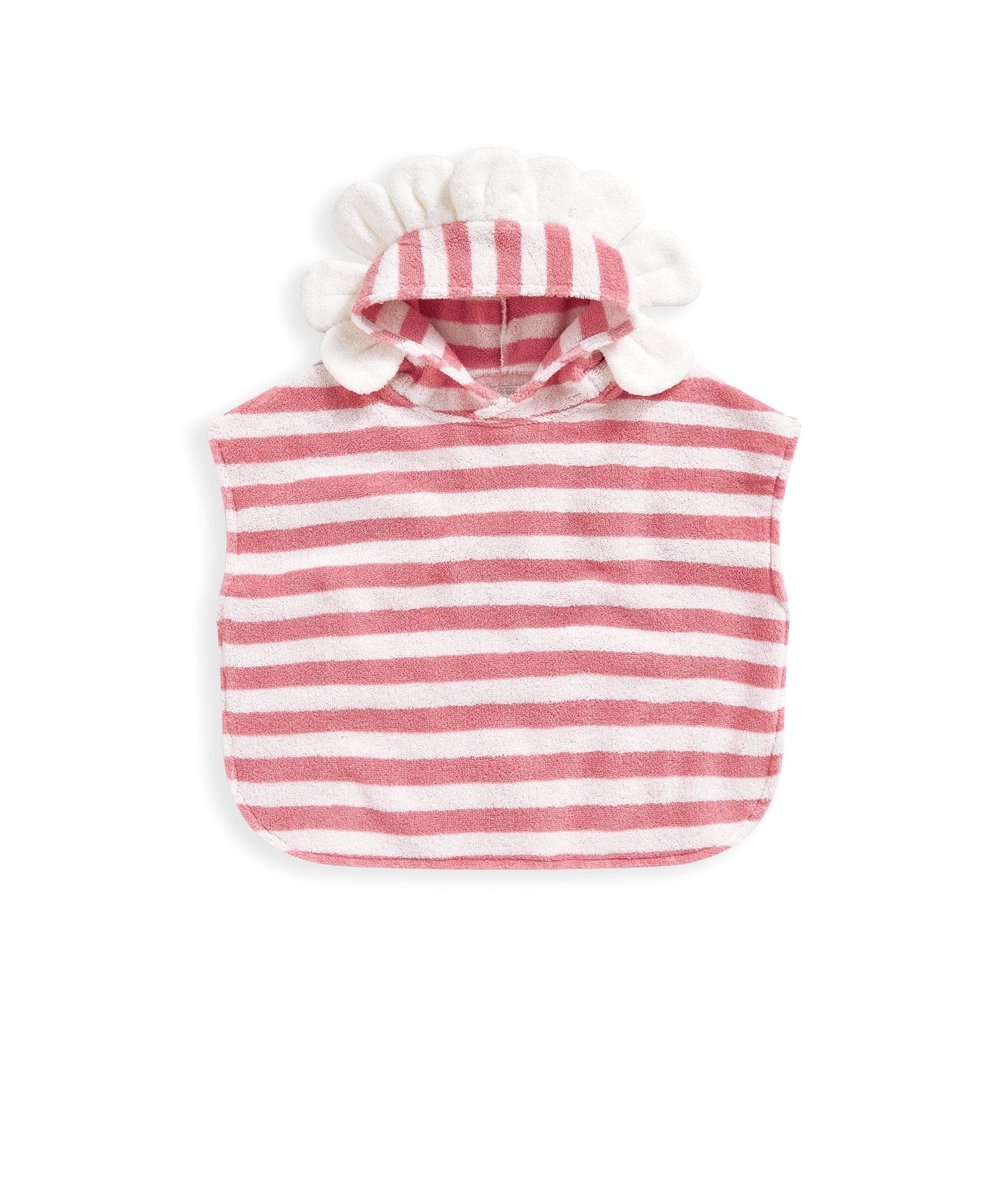 Wrap them up cosy and warm after a dip in the pool or sea, with this adorable sleeveless hooded poncho is cosy super-abssorbent double-sided terry towel poncho. Flower petals on hood add a unique twist to this practical, super handy yet beautiful swimwear accessory that little ones love to wear post-splashing session.