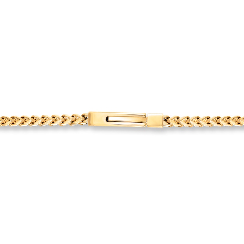 An easy way to add polish to a look, this foxtail chain is styled in yellow ion-plated stainless steel. The 22-inch necklace secures with a snap-lock clasp.