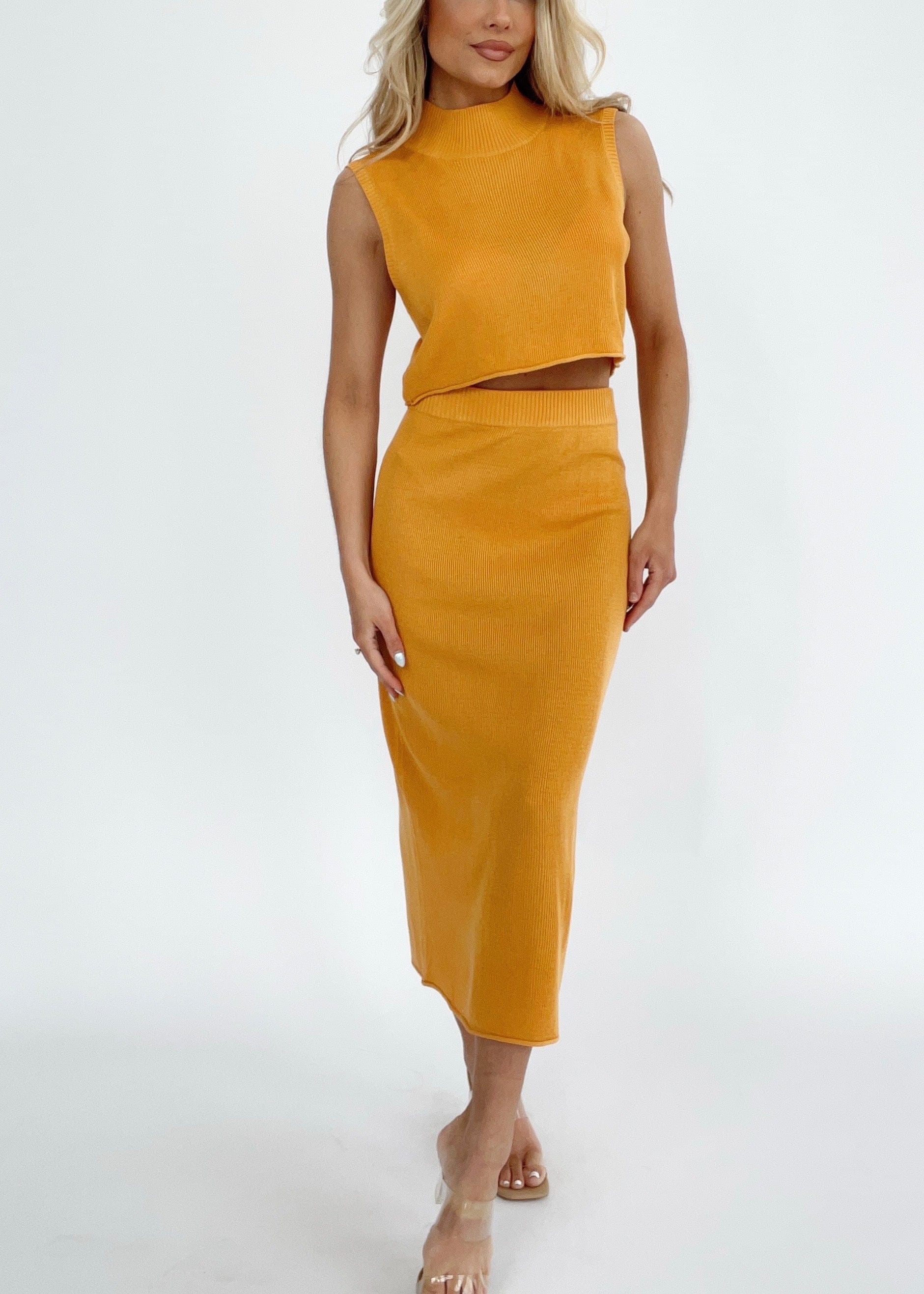Introducing the perfect combination of comfort and style: the Francesca Midi Skirt. With its high waisted, body-hugging fit and stretchy ribbed fabric, this skirt is ideal for any occasion, from brunch dates to vacation dinners. The elastic waistband ensures a comfortable and flattering fit, while the bold, pop of color adds a trendy and chic touch to your spring and summer wardrobe. Elevate your fashion game with the Francesca Midi Skirt.
