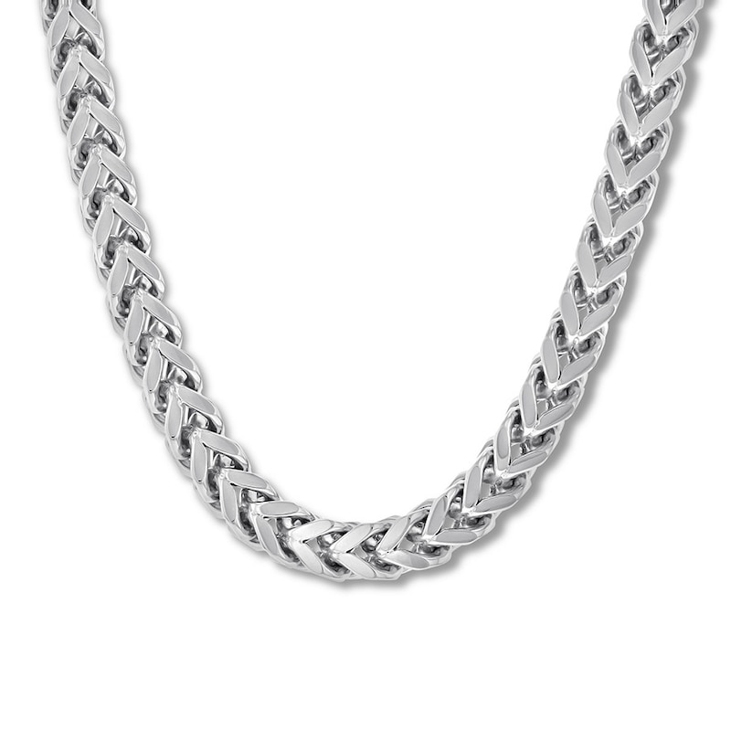 Crafted of stainless steel, this Franco chain necklace is 24 inches in length and fastens with a lobster clasp.