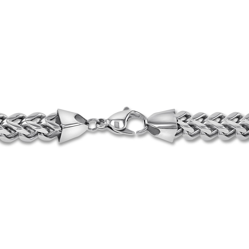 Crafted of stainless steel, this Franco chain necklace is 24 inches in length and fastens with a lobster clasp.