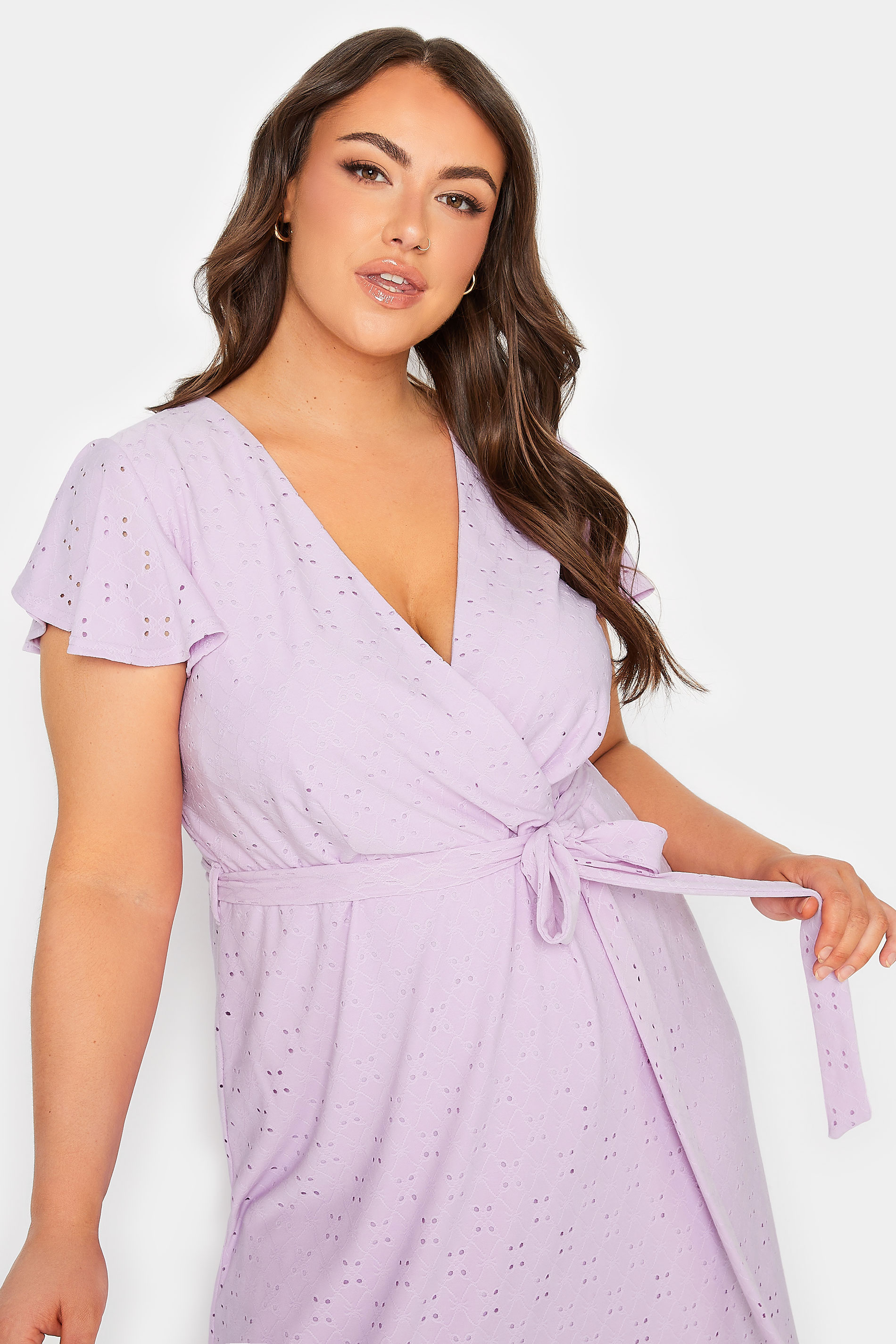 Stay on trend this season with the new broderie plus size dress! Made from a comfortable jersey fabric, this dress features a maxi length, wrap neckline, short sleeves, and a tie waist. Style with sandals for the perfect holiday look.