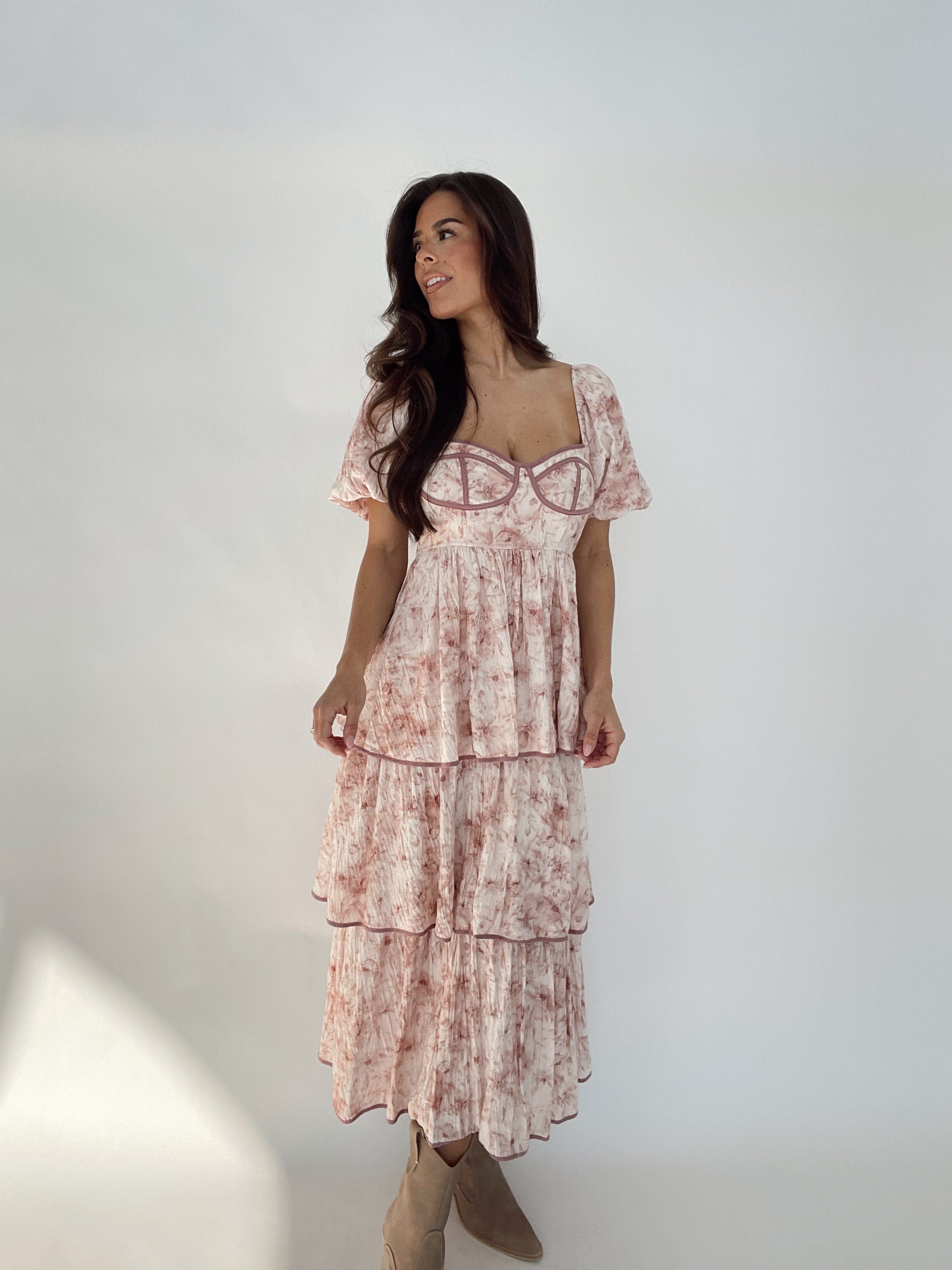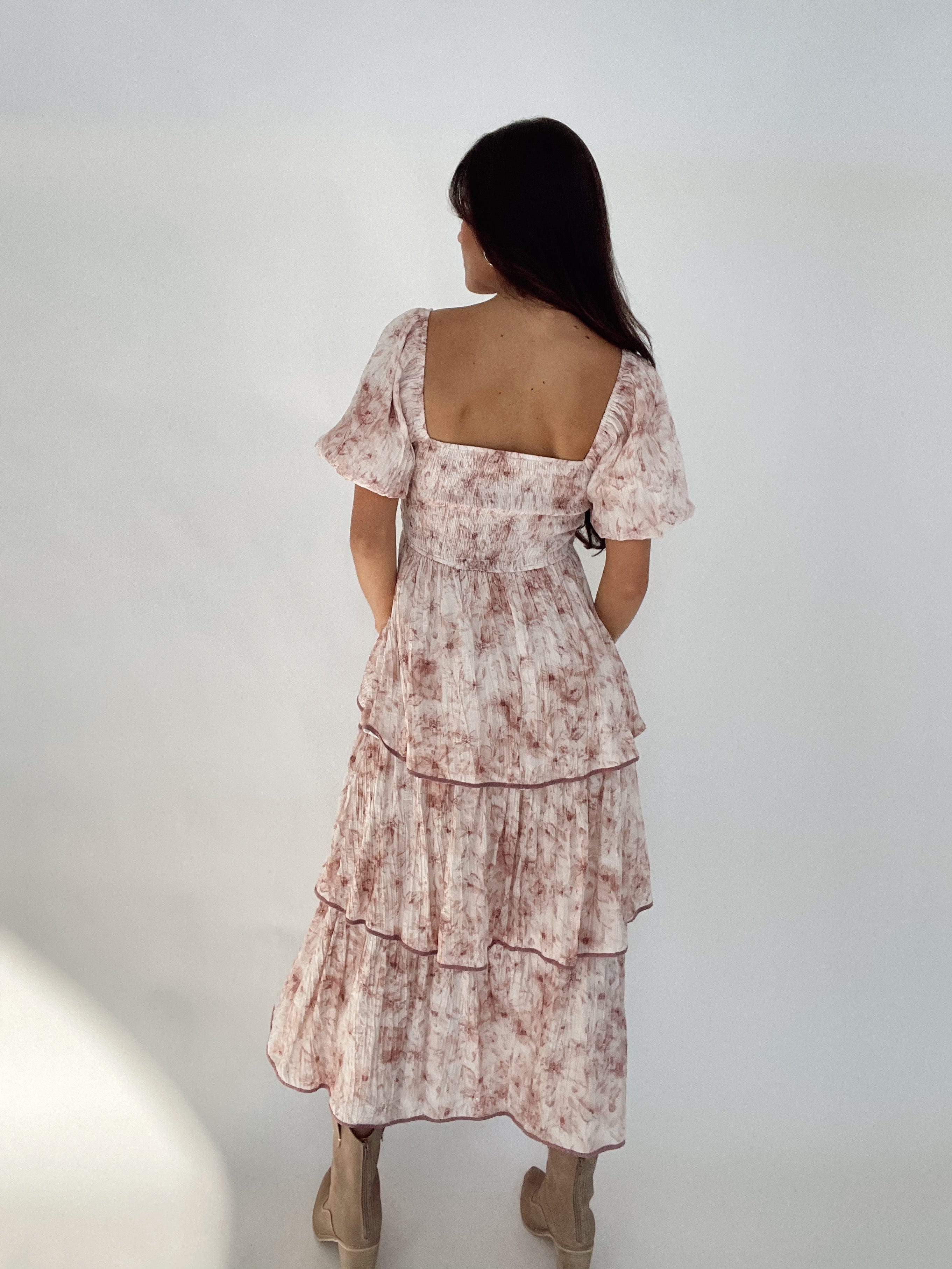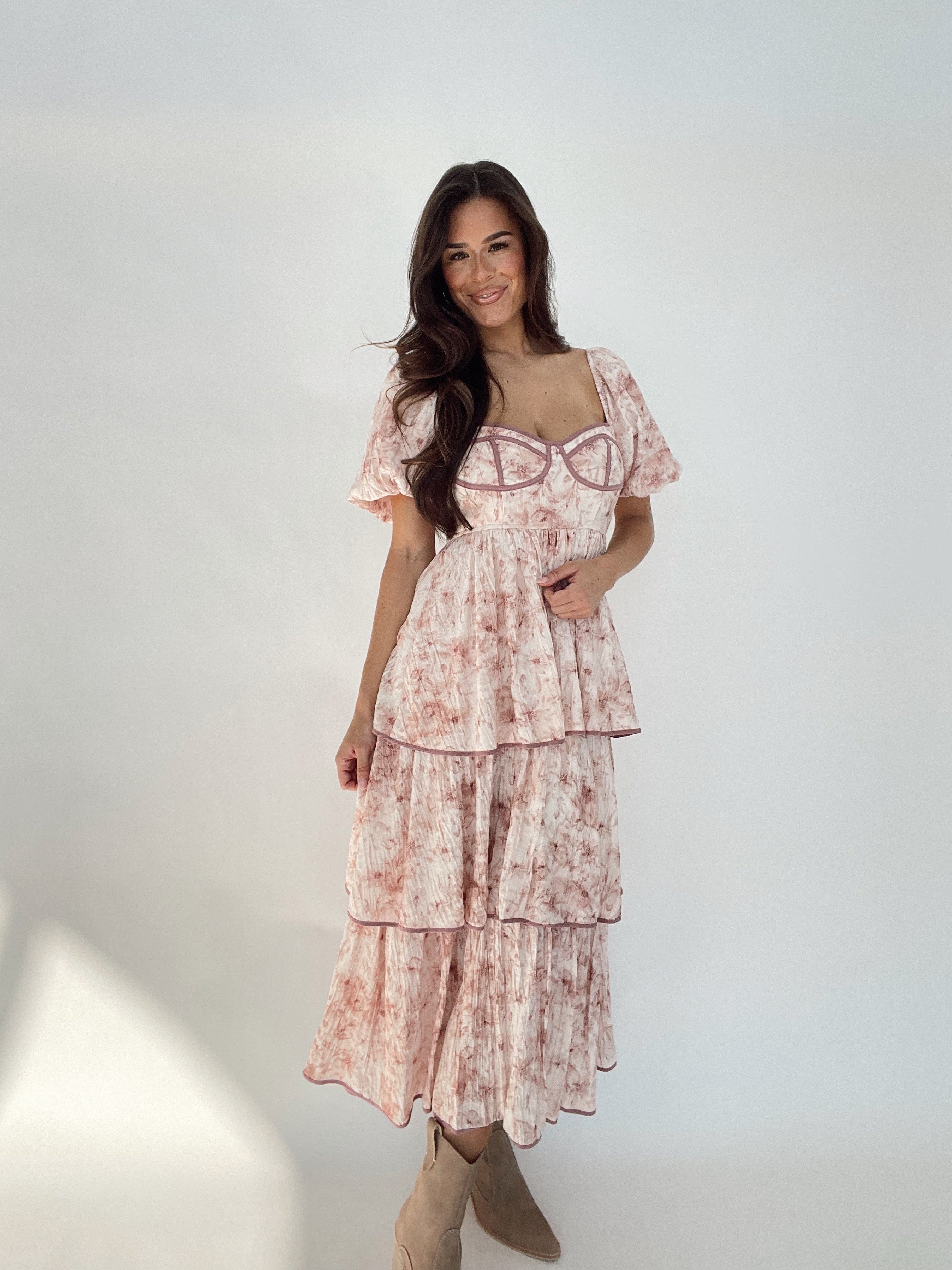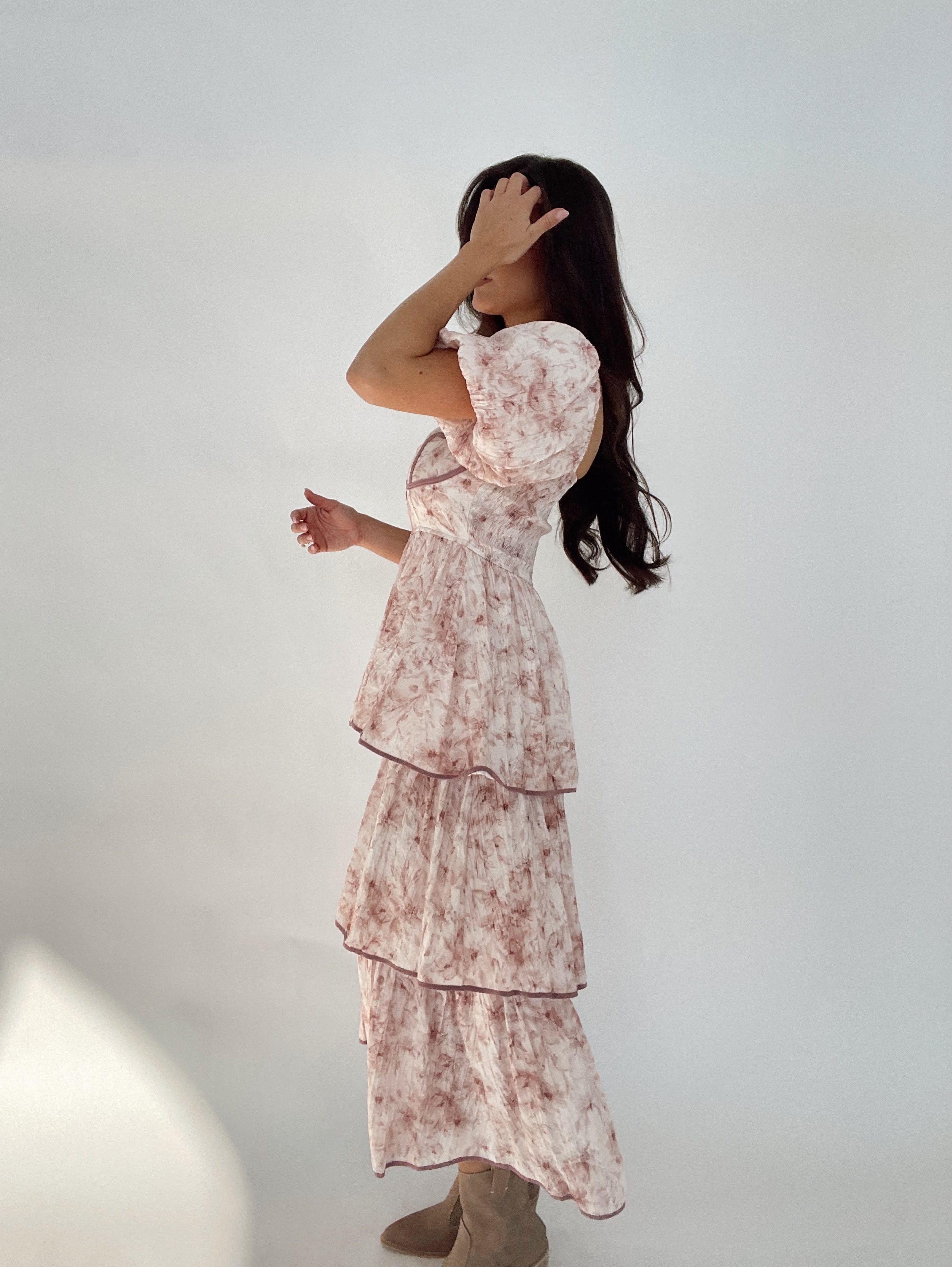 Expertly crafted, this Frilly Floral Print Dress features a stunning floral print and elegant bubble sleeve design. Its maxi length and stretchy material ensure a comfortable fit, while the layered skirt adds a touch of sophistication. Perfect for any occasion, this dress exudes timeless style.